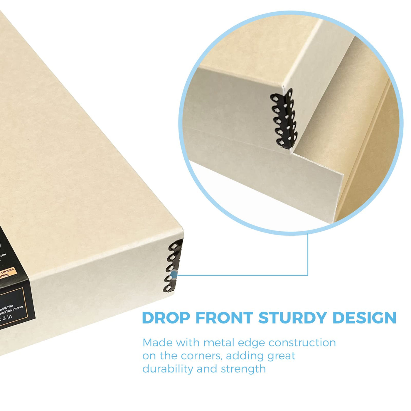 Lineco Museum Archival Storage Box, 17.75X22.75X3 In. Drop Front Design. Acid Free With Metal Edge. Organize Photos, Pictures, Prints, Documents, Crafts, Diy. Tan, 1 Pack