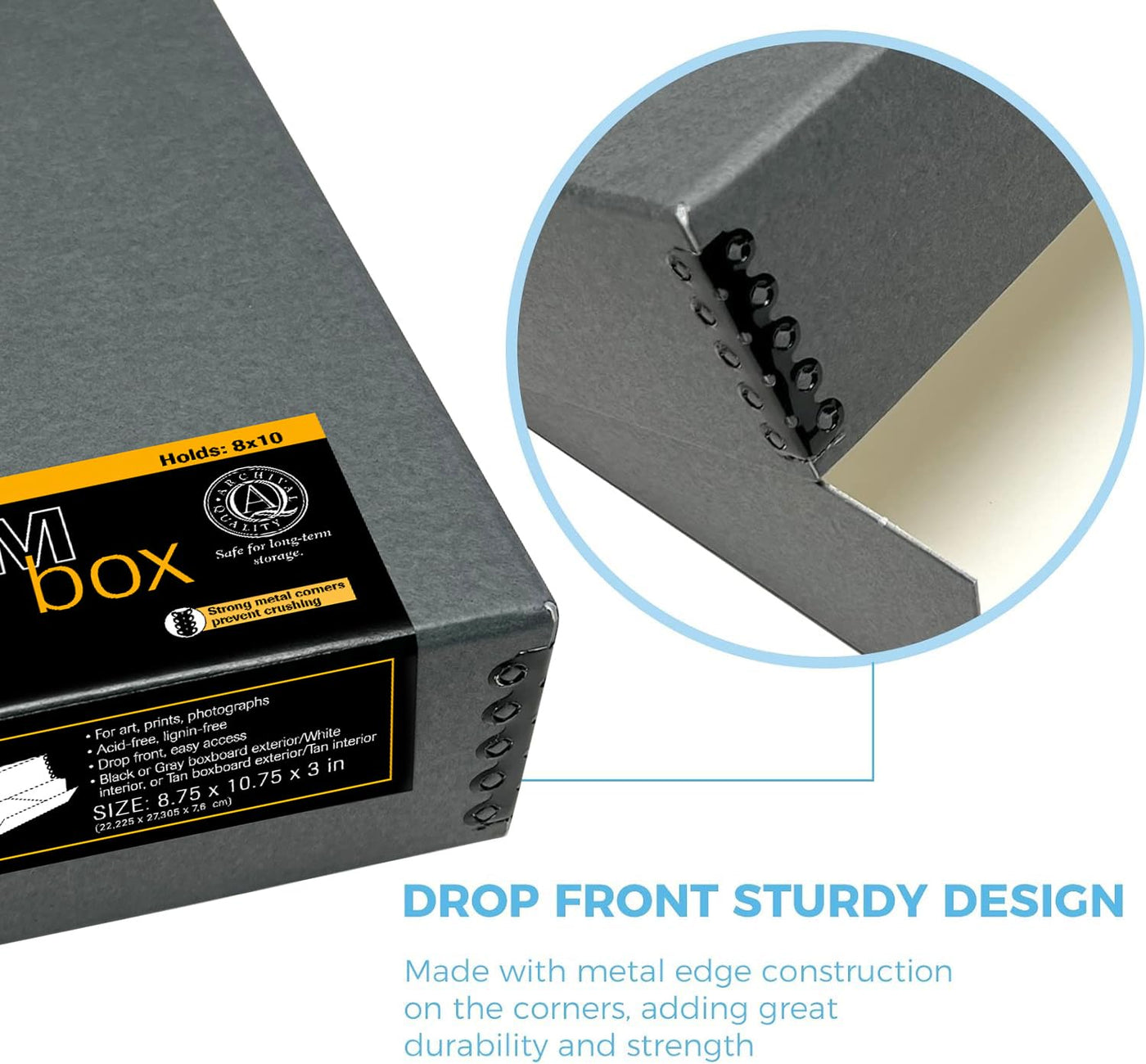 Lineco Museum Archival Storage Box, 8.75X10.75X3 In. Drop Front Design. Acid Free With Metal Edge. Organize Photos, Pictures, Prints, Documents, Crafts, Diy. Gray, 1 Pack