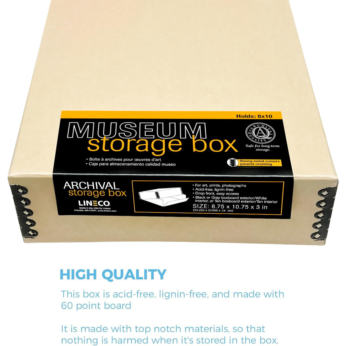 Lineco Museum Archival Storage Box, 8.75X10.75X3 In. Drop Front Design. Acid Free With Metal Edge. Organize Photos, Pictures, Prints, Documents, Crafts, Diy. Tan, 2 Pack