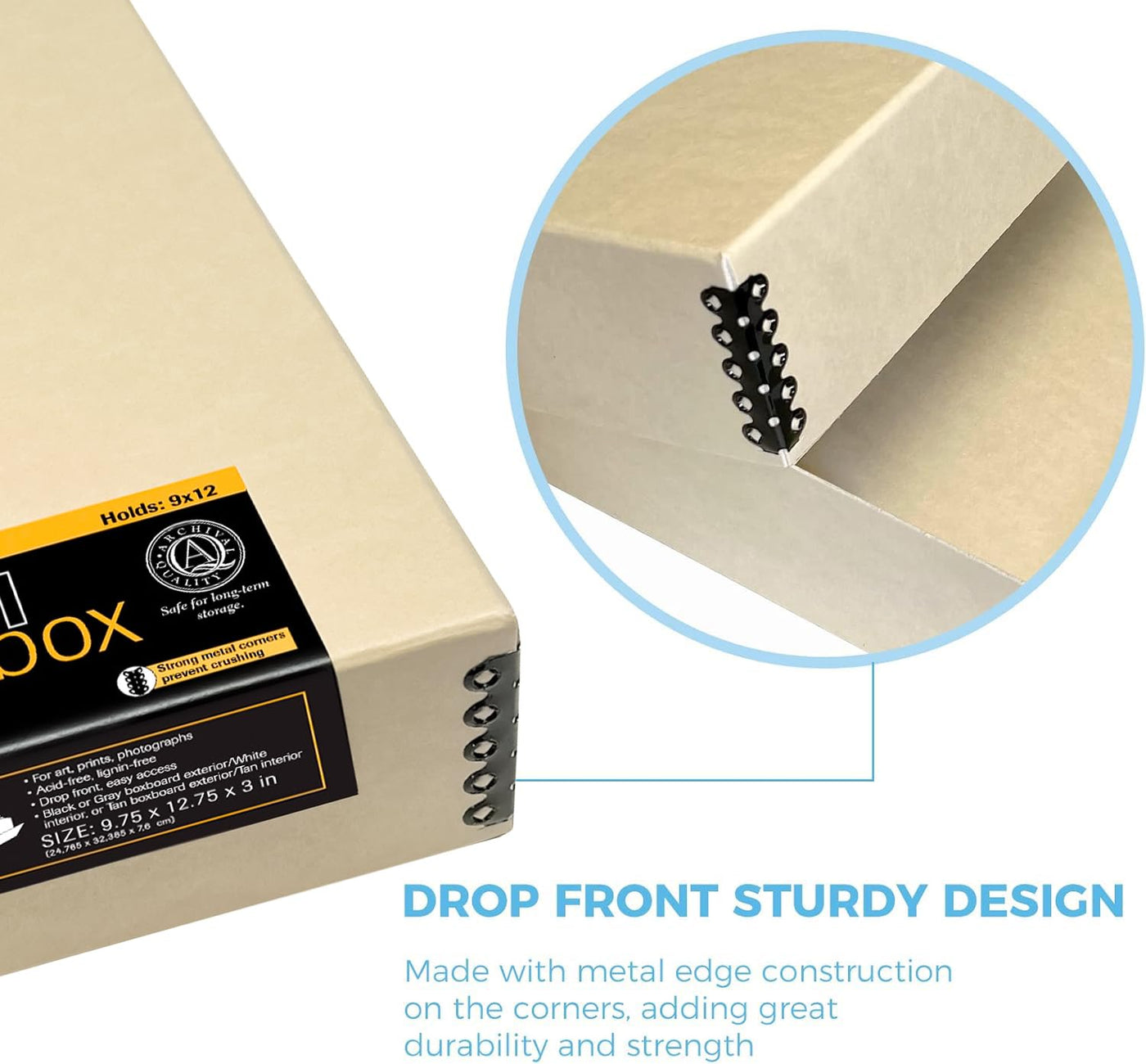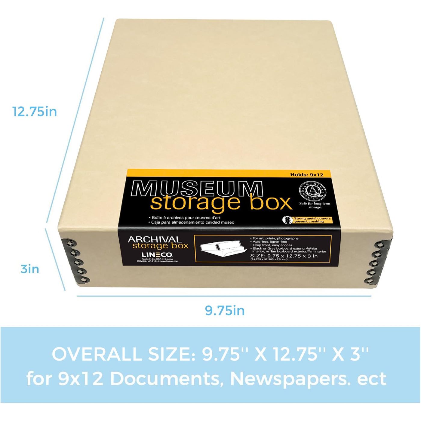 Lineco Museum Archival Storage Box, 9.75X12.75X3 In. Drop Front Design. Acid Free With Metal Edge. Organize Photos, Pictures, Prints, Documents, Crafts, Diy. Tan, 1 Pack