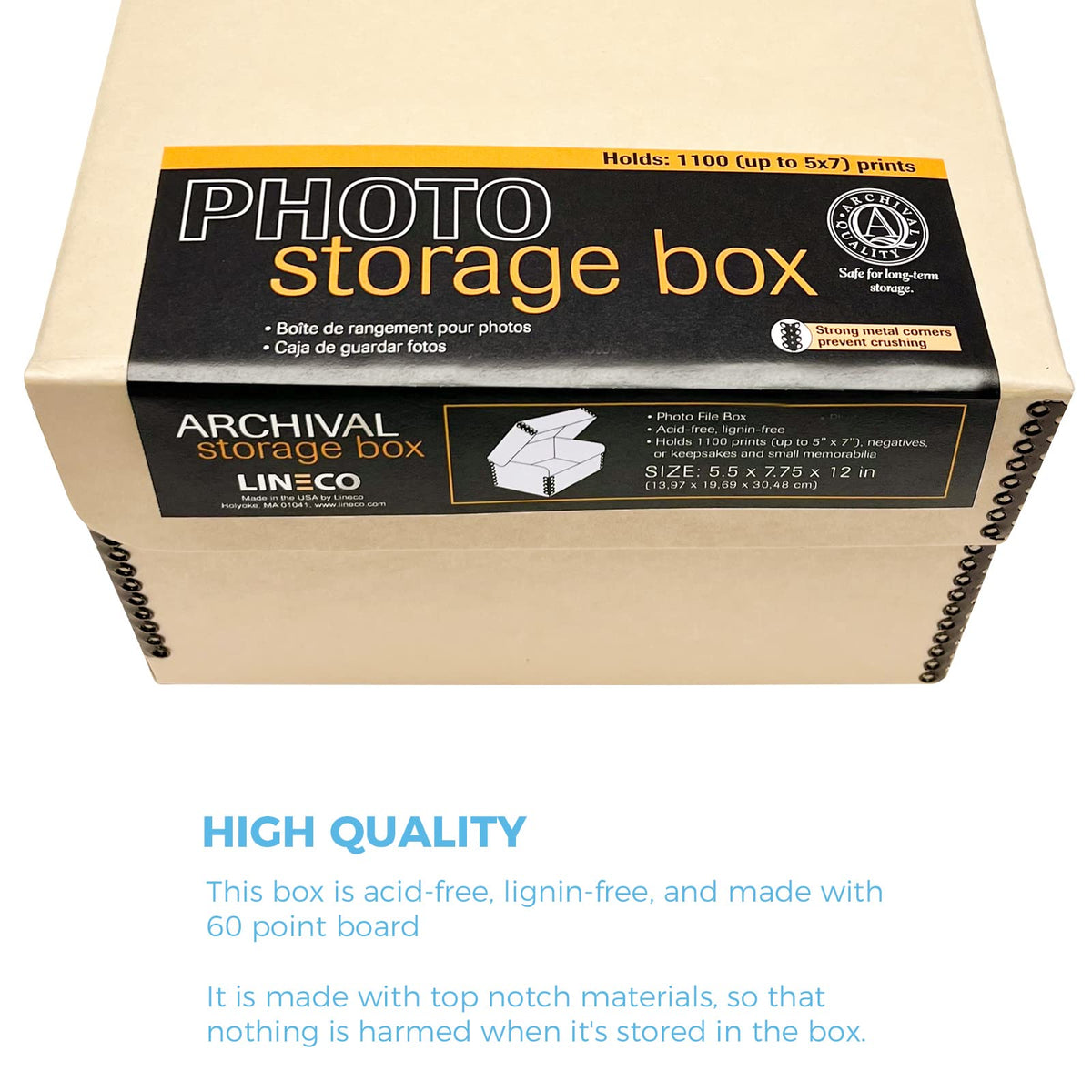 Lineco, Tan Hinged Lid Photo Box 5.5'X7.75'X12' Archival Acid Free. Holds Up To 1100 Of 4X6 Or 5X7 Pictures, Print, Art. Preserve Longevity, Photos Or Documents, Craft, Prints, Cards, 2 Pack