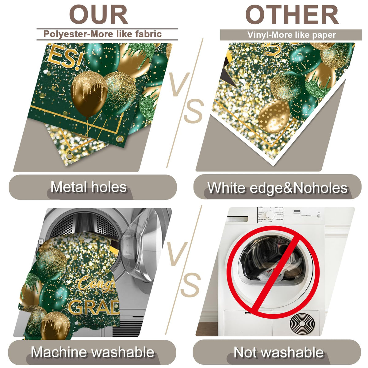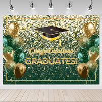 Mocsicka Graduation Backdrop 7X5Ft Green And Gold Glitter Class Of 2025 Congrats Grad Party Decorations Congratulations Graduate