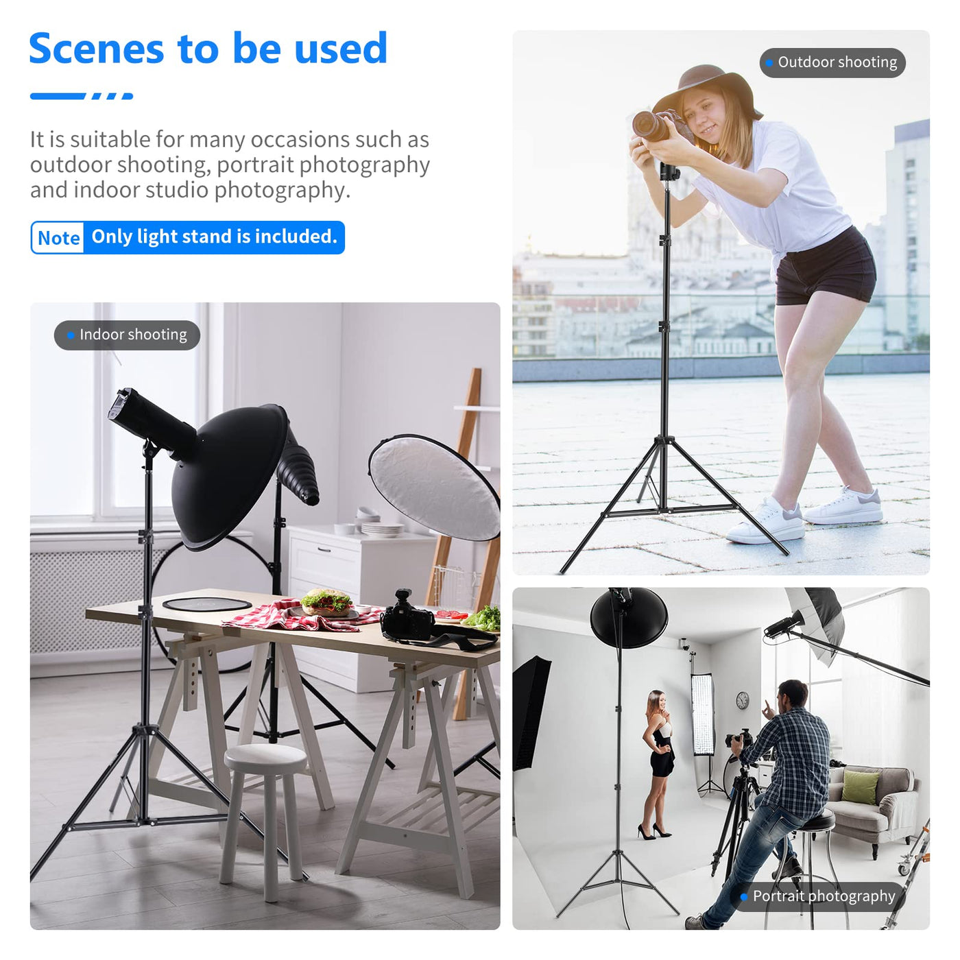 Neewer 6.23 Feet/190Cm Aluminum Light Tripod Stands For Studio Kits, Photography Lights, Softboxes(Black,2 Pack)