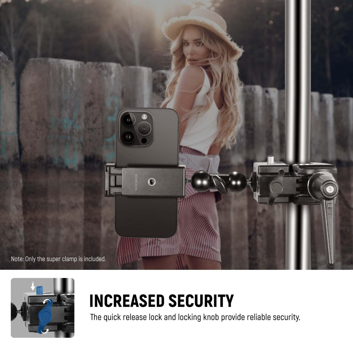 Neewer Super Clamp With 5/8'' Stud, Spring Lock, 2.4'' Jaw Grip Heavy Duty Crab Pole Clamp For Round Pipe Flat Surface, For Phot