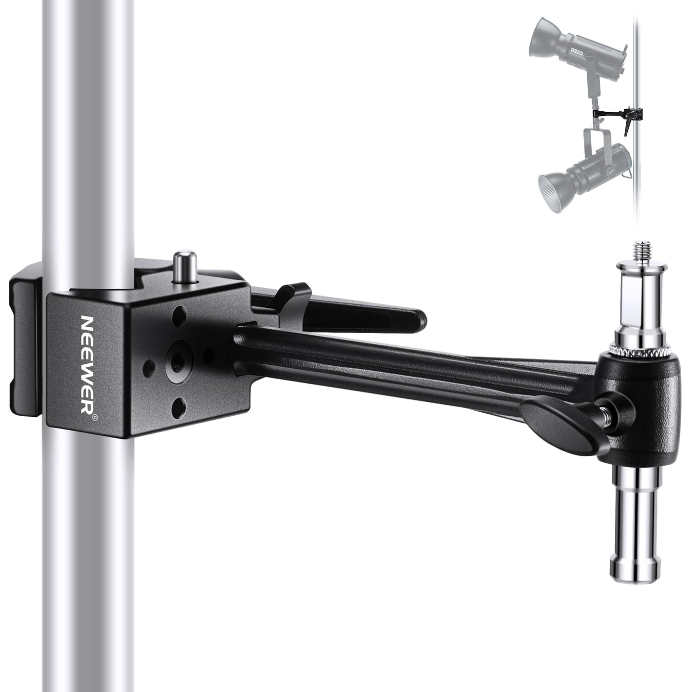Neewer Super Clamp With 6 Extension Arm, 5/8 Stud, 2.4 Jaw Grip Heavy Duty Crab Pole Clamp For Round Pipe Flat Surface,For Photo