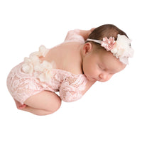 Q: Does the romper come with any accessories?A: Yes, the newborn lace romper comes with a matching flower headband, perfect for completing the photography outfit.