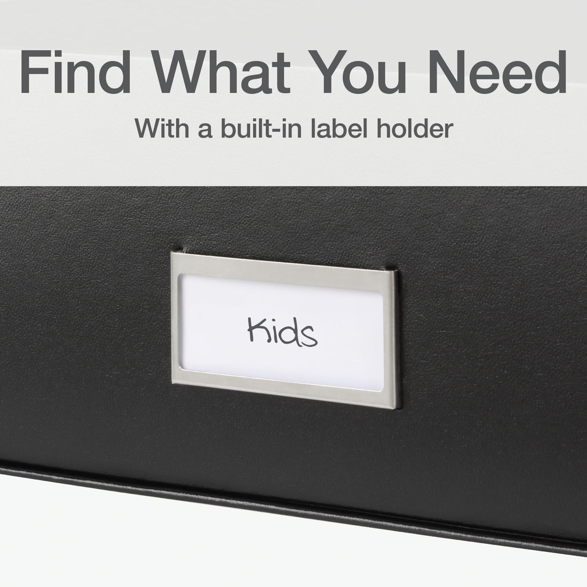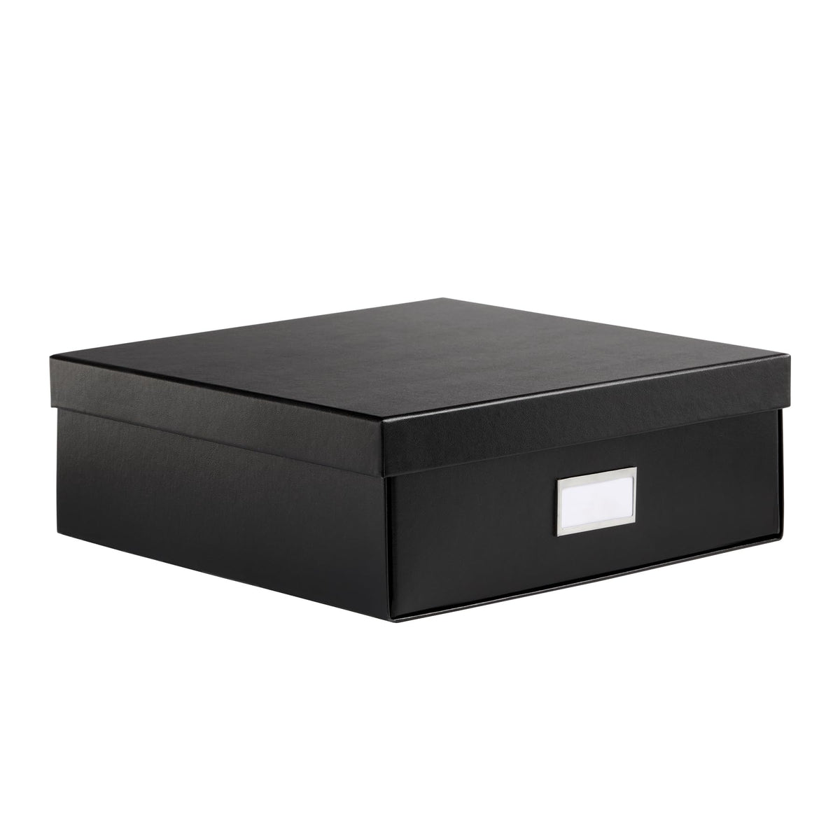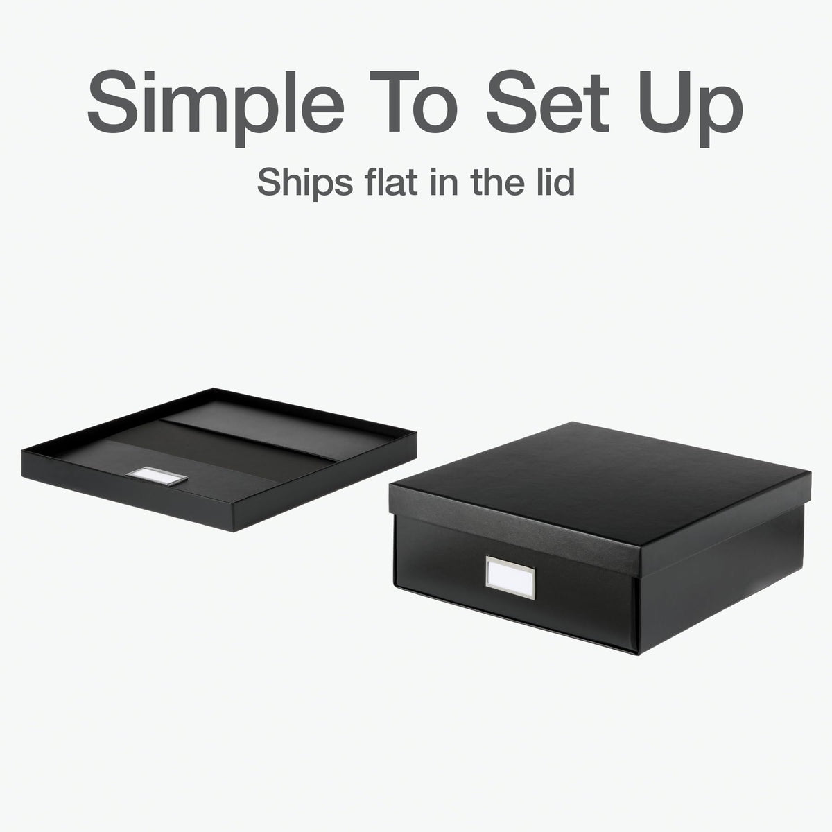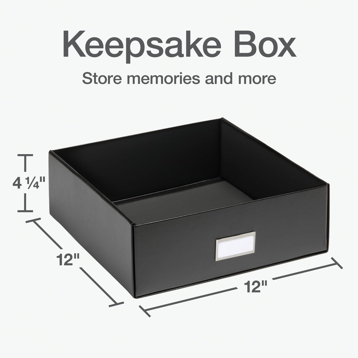 These Oxford Keepsake Storage Boxes Are Perfect For Storing And Protecting Memorabilia, Photographs, Keepsakes, Office And School Supplies And Much More. Each Convenient Organization Box Features A Built-In Metal Label Holder On The Front That Lets You Customize Your Boxes By Dates, Categories, Or Memories: Swap Out Your Labels When You Want To. Each Box Comes With One Label. Black Storage Boxes Are Easy To Set Up, With No Tools Needed. These Sleek And Classic Organizer Boxes Are Durable And Strong Enough To Keep Everything In Place And Protected. You Can Also Build A Collection Of Storage Boxes, And Stack Them As You Need More Room To Organize And Guard Your Trinkets, Treasures, Trading Cards, Memories And More. They'Re Great For Home, Office, School Or Anywhere You Need Your Items Secured And In Place. A Secure-Fitting Lid Ensures That Your Supplies, Memorabilia And Treasures Are Safe And Sound. Black. L:12' X W:12' X H:4 1/4'. 1 Medium Box.