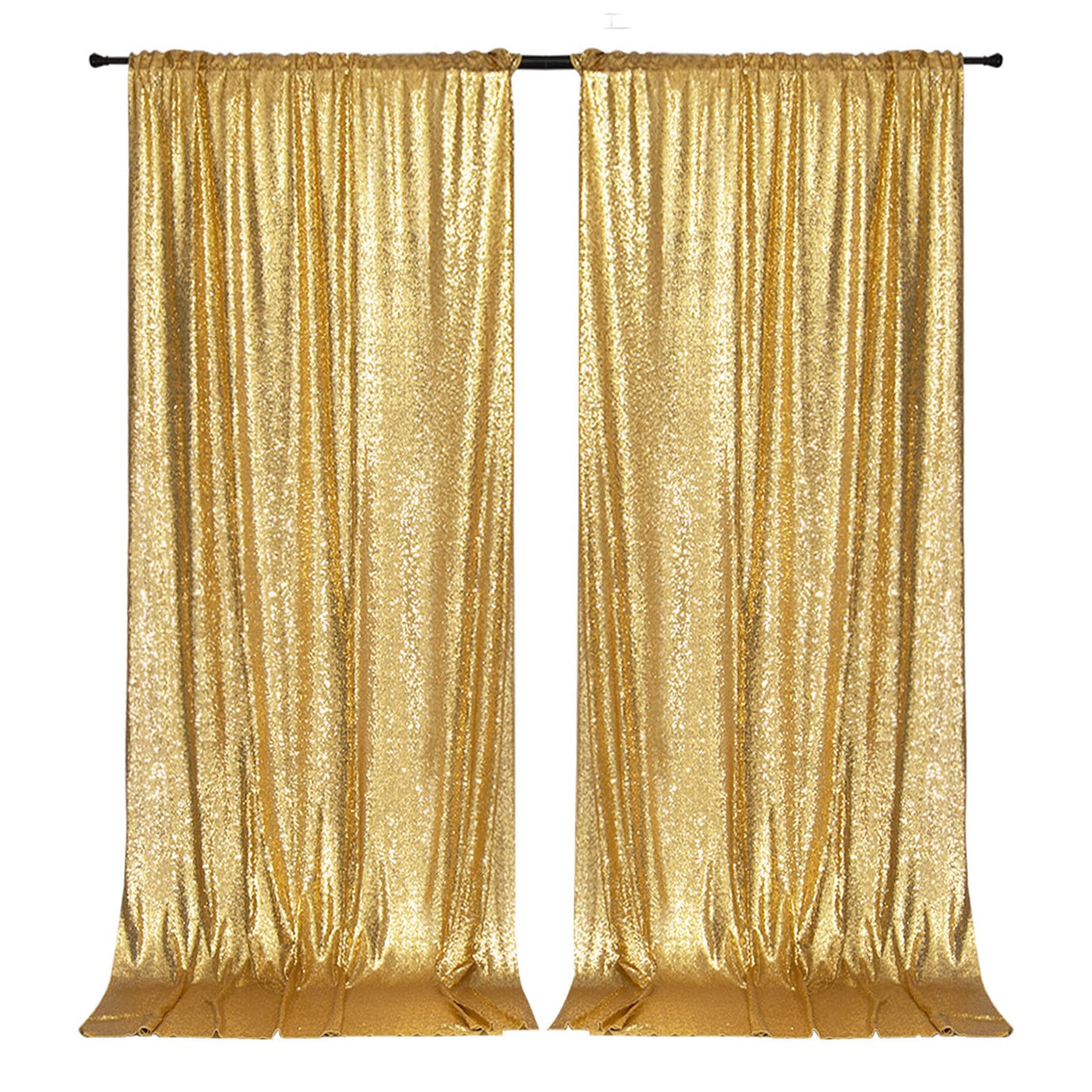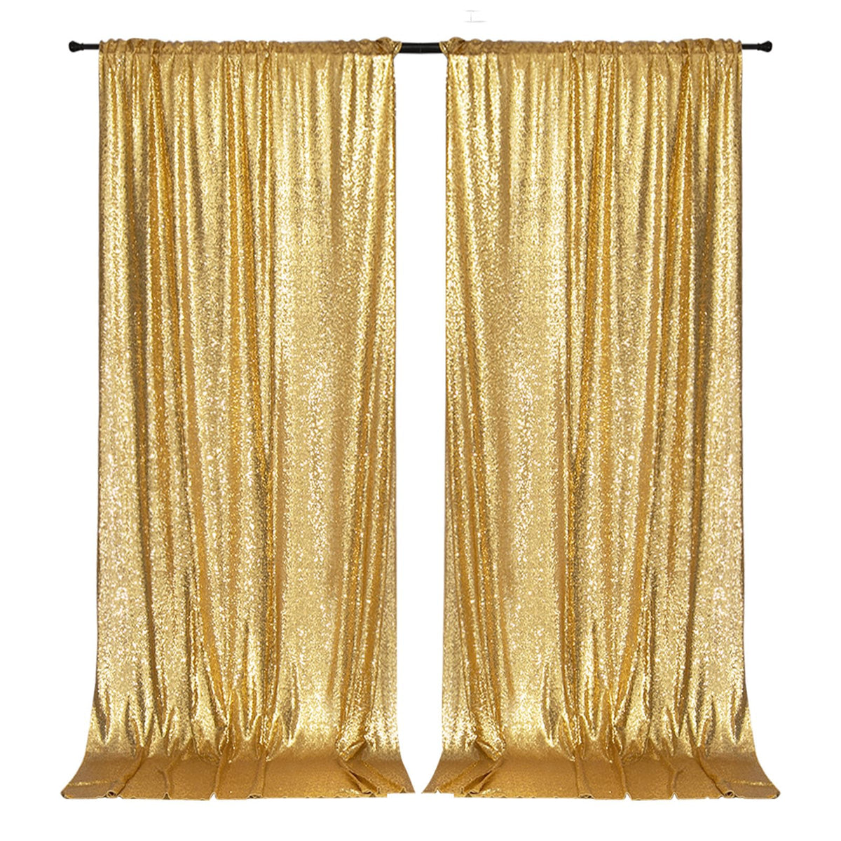 Partydelight 2 Panels Gold 5Ft X 10Ft Sparkly Sequin Backdrop Curtains For Wedding, Party, Room Decorations.