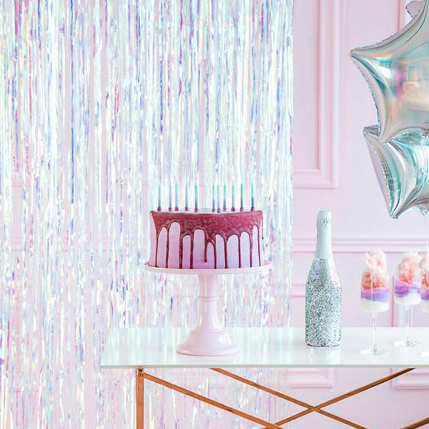 Q: What occasions are these foil fringe curtains suitable for?A: The PartyWoo Foil Curtains are perfect for a variety of occasions including birthday parties, weddings, baby showers, bridal showers, bachelorette parties, gender reveal celebrations, graduation parties, and anniversaries.