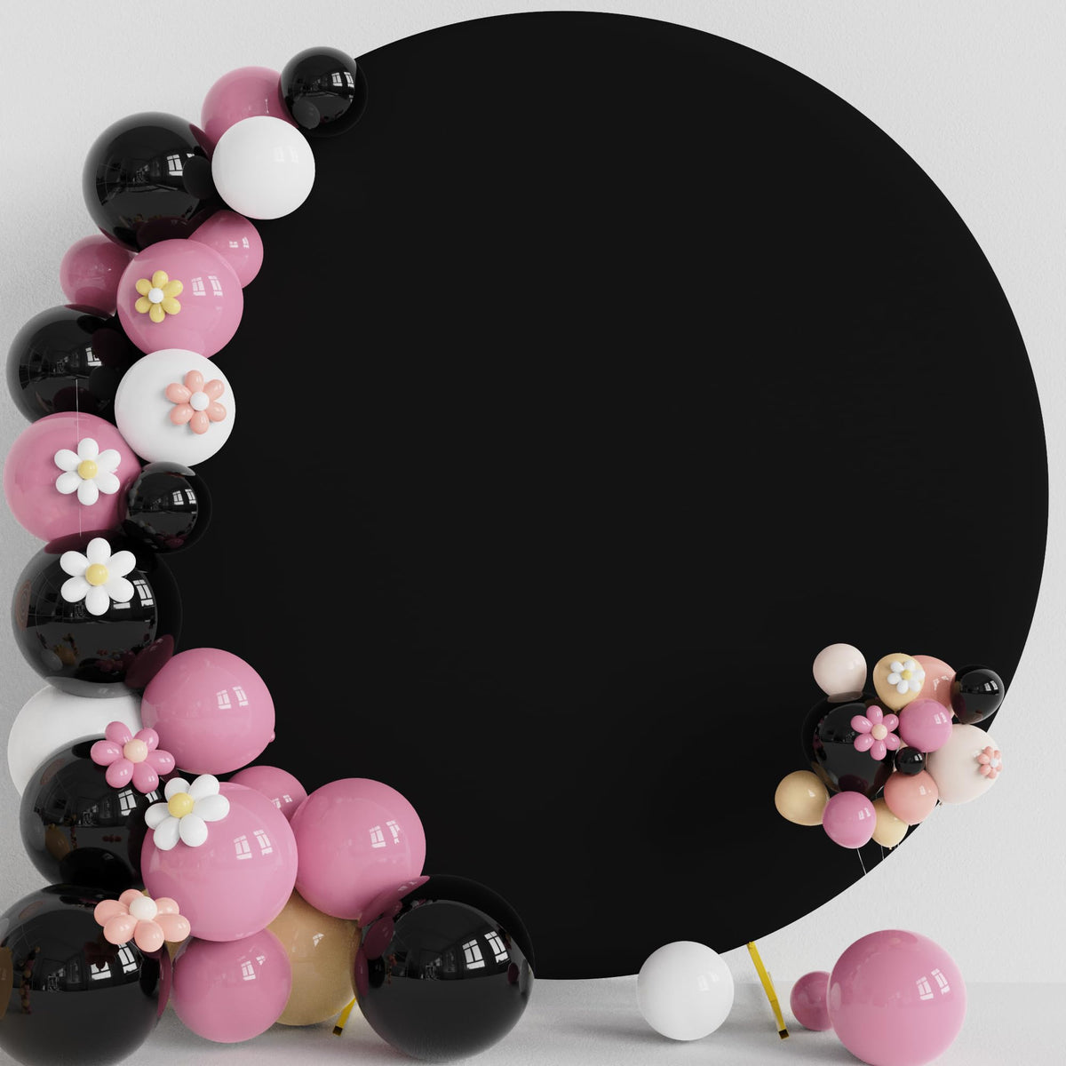 Putros 7.2Ft Round Backdrop Cover Black Circle Arch Cover With Buckles Polyester Fitted Round Balloon Arch Cover For Wedding Bir