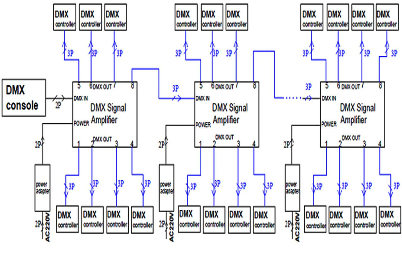 Dmx512 Signal Amplification Function And Prolong The Dmx Signal Transmission Distance | Dmx512 Signal Distribution Function, Multi-Level Sharing After A Dmx Control System | Separate Inductors Power Cable, Independent Dmx Signal Ground, The Standard Dmx Independent Distribution Amplifier | Eight Independent Isolated Output Function, To Avoid The System After The Class Dmx Signal Interference And Sabotageone Input, Eight Independent Dmx Signal Amplifier Output