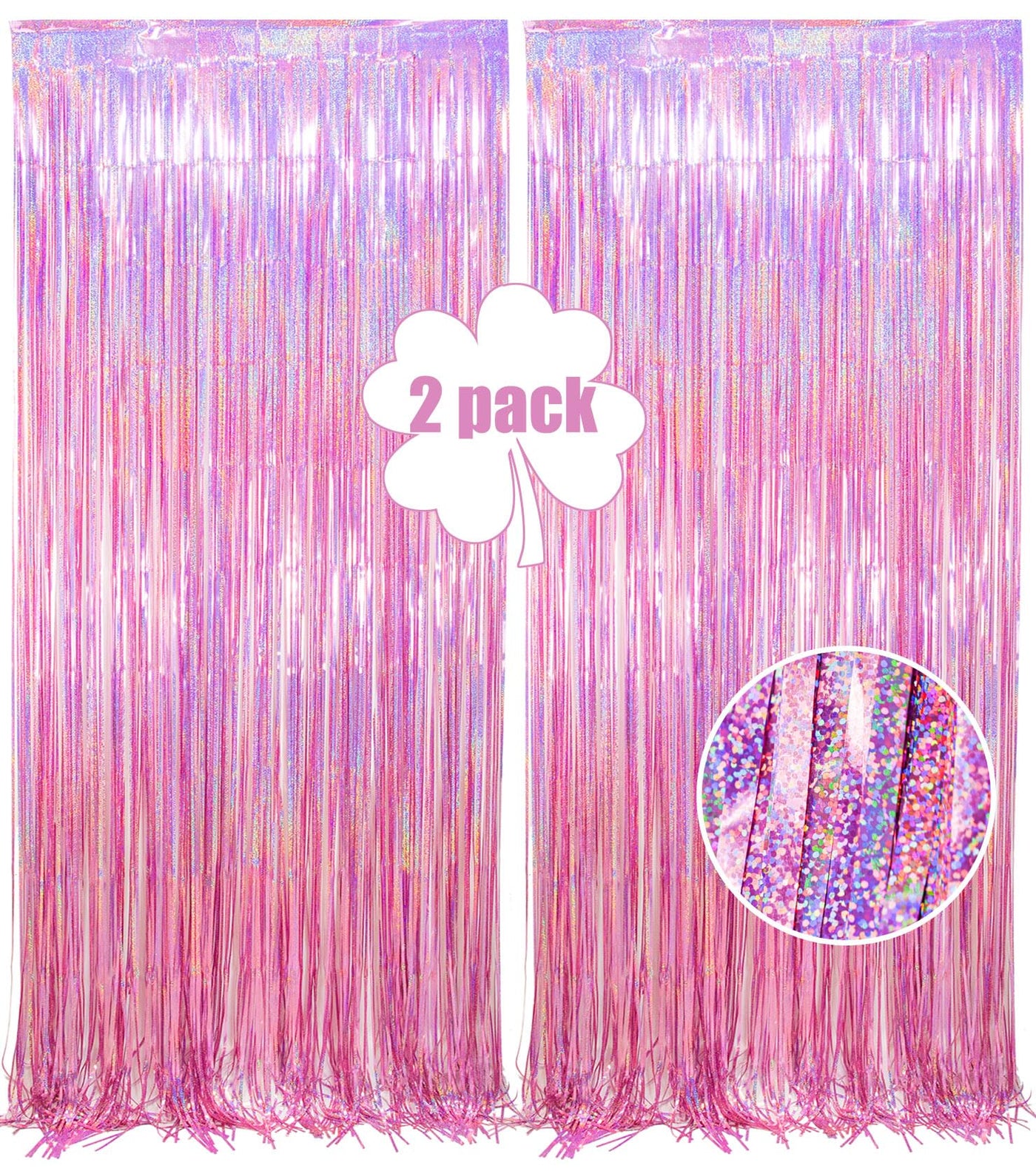 Package Includes: 2 Packs Of Glitter Pink Foil Fringe Curtains, Additional Double-Sided Sticky Dots, A Roll Of Ribbon. Size:3.2 Ft X 8.2 Ft Each Material: Food Packaging Level Mylar, Can Be Reused Suitable For Hanging On A Door Or Coverage A Wall Fully. Perfect As A Party Backdrop For Mermaid Hello Kitty Theme Birthday, Bachelorettes, Wedding, Bridal Shower, Baby Showers, Graduations, Christmas, New Year'S Eve, And More. Easy To Use, The Foil Fringe Curtain Comes With Double-Sided Tape Attached To The Top