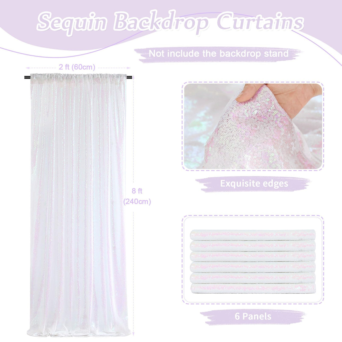 Soardream White Iridescent Sequin Backdrop Curtains 6 Pieces 2Ft X 8Ft Sequin Fabric Backdrop Glitter Drapes Baby Shower Backgro