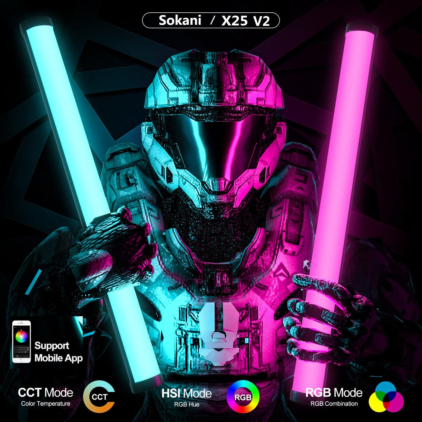 Sokani X25 V2 Rgb Led Video Light Wand Stick With App Control For Video Photography Painting With Full Color Dimming Bi-Color 2800K-10000K Rechargeable Battery Oled Display For Youtube Tiktok Tik Tok