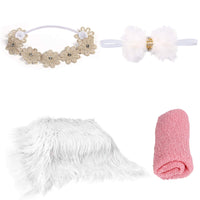 Spokki 4 Pcs Newborn Photography Props Outfits Baby Long Ripple Wrap And Toddler Swaddle Blankets Photography Mat With Cute Headbands For Infant Boys Girls(0 12 Months) (White)