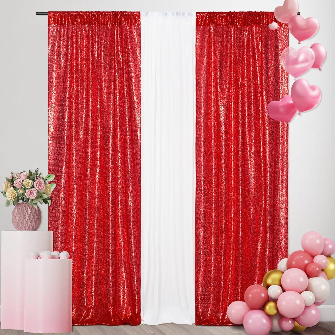 Squarepie Sequin Curtain 2Ft X 8Ft 2Pcs Red Backdrop Background Sparkly For Wedding Party Decoration