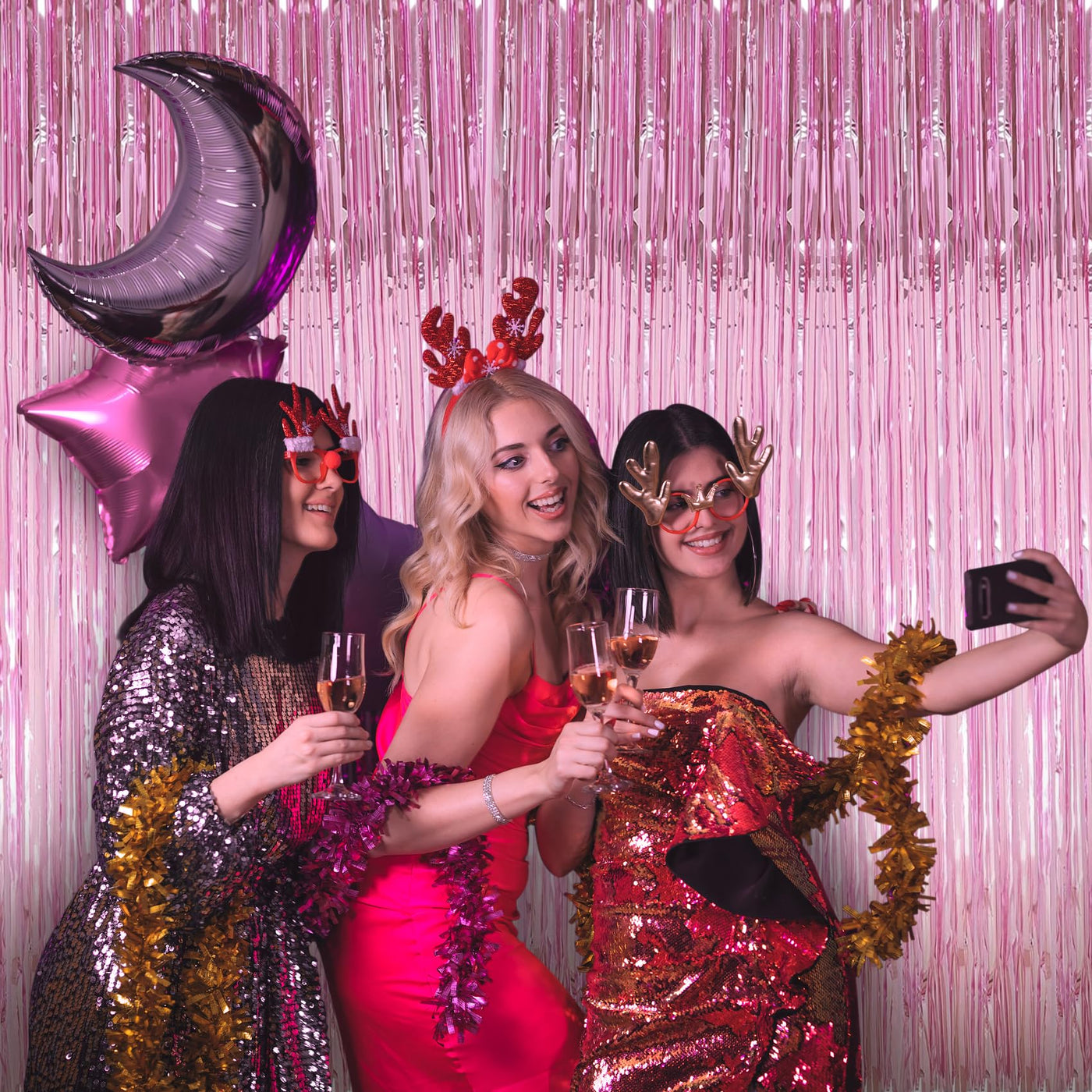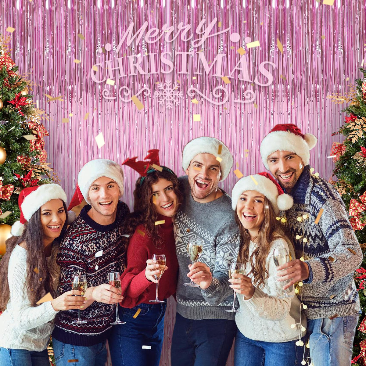 Q: Is the tinsel material safe for children and pets?A: Yes, the tinsel backdrop is made from high-quality, non-toxic, and odorless materials, ensuring safety for families with children and pets.