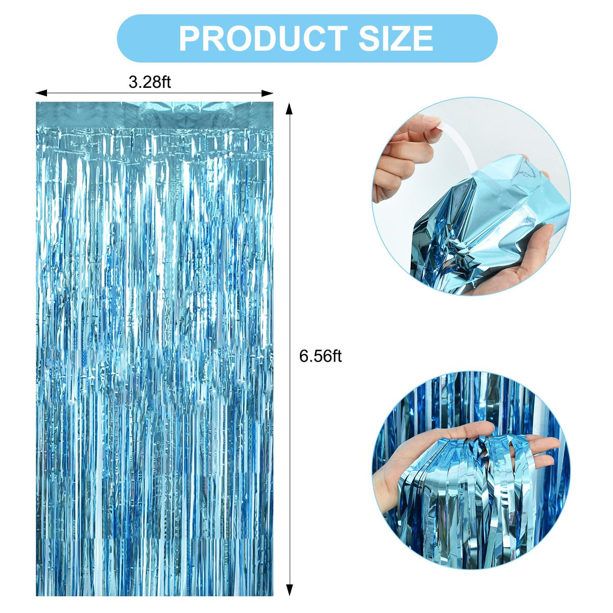 Toniful 3Pcs Light Blue Door Streamers,Light Blue Photo Booth Backdrop Metallic Streamers Foil Fringe Curtains For Birthday,Chri
