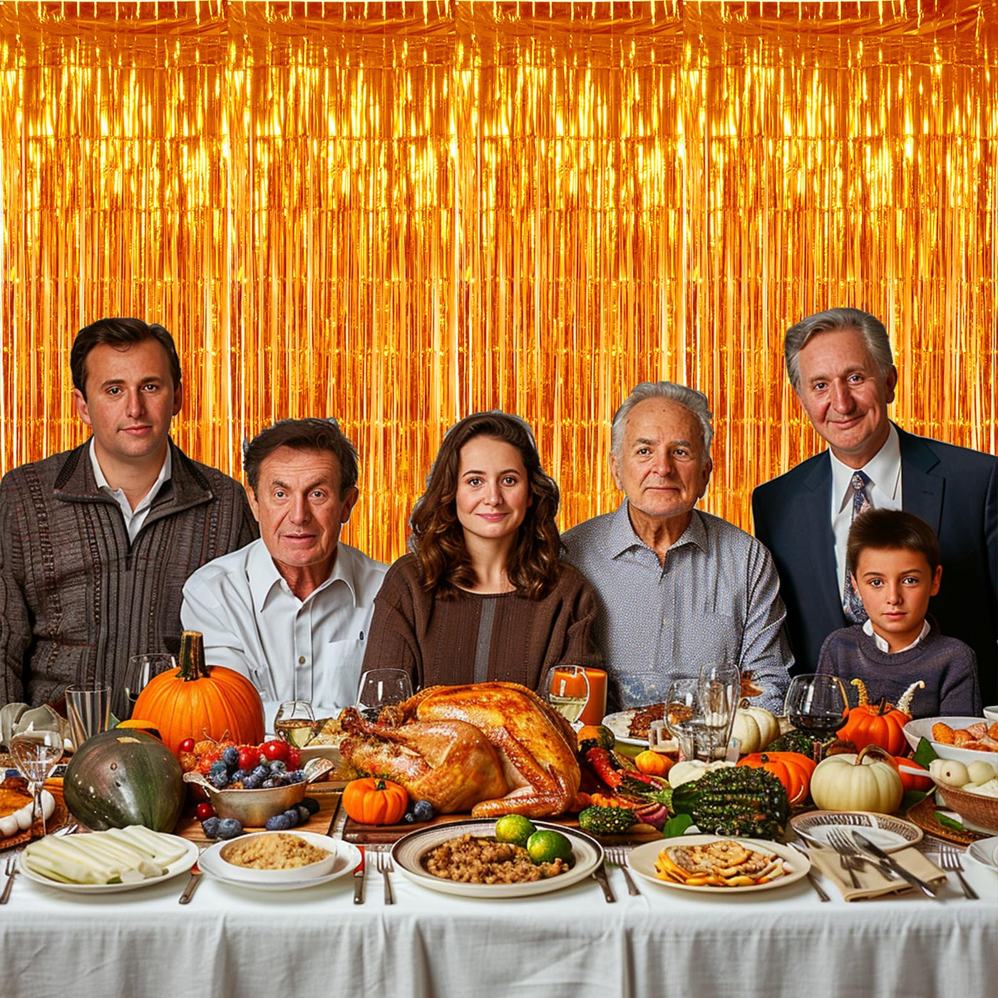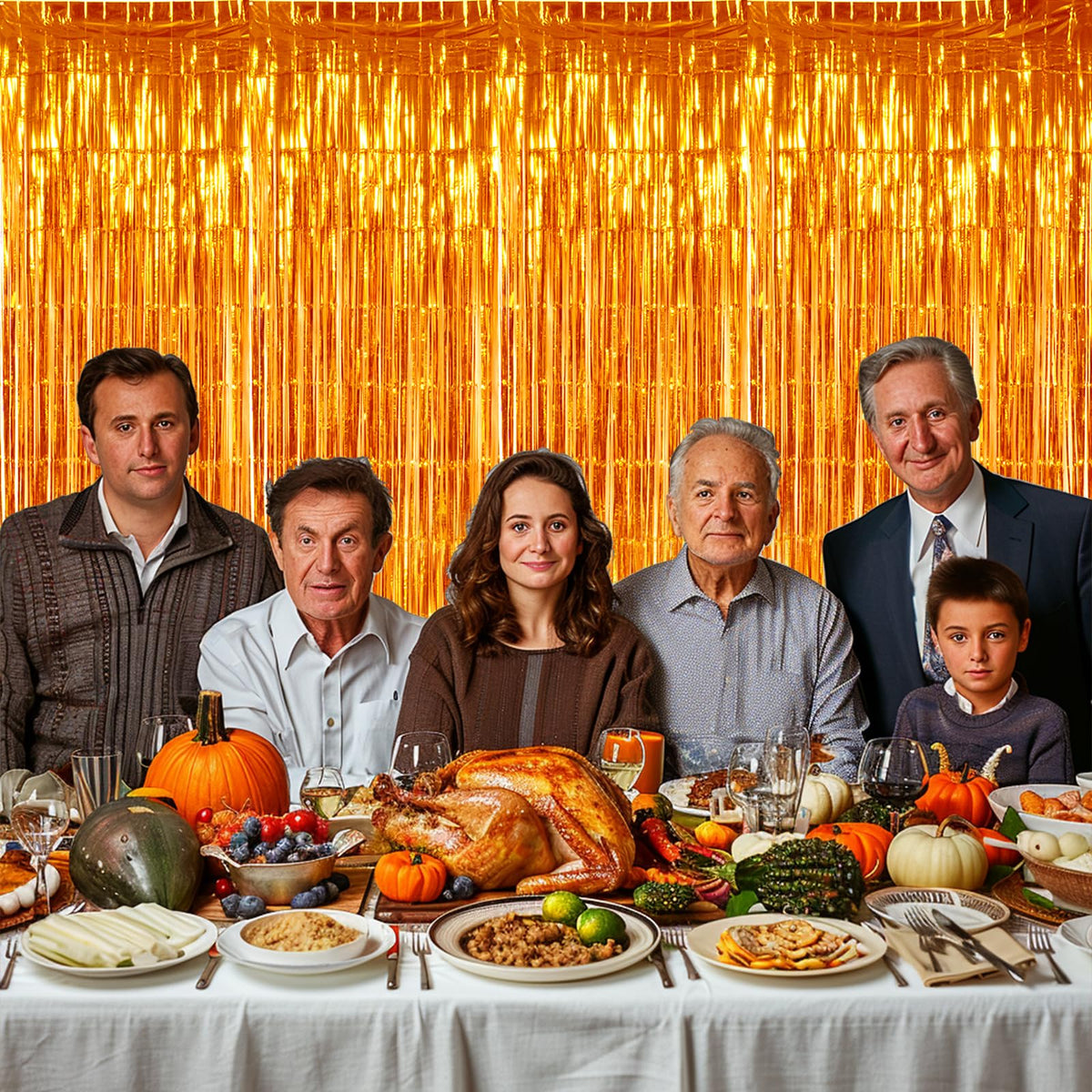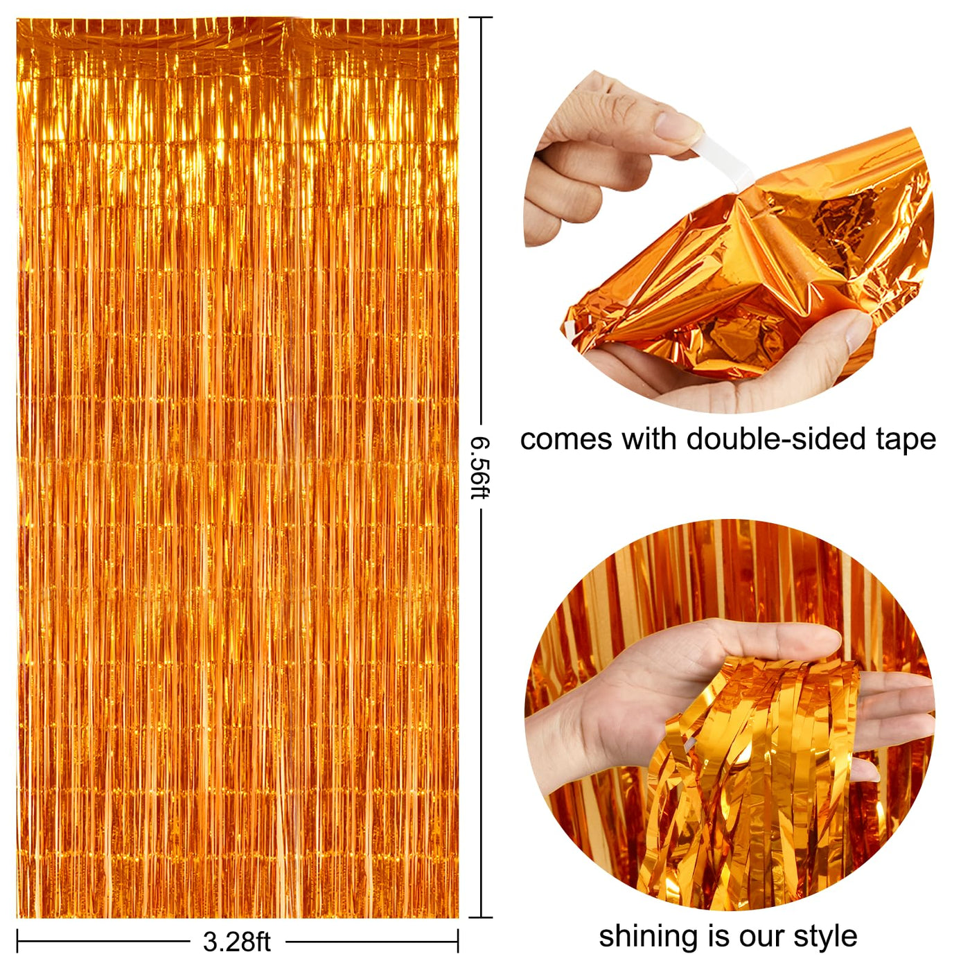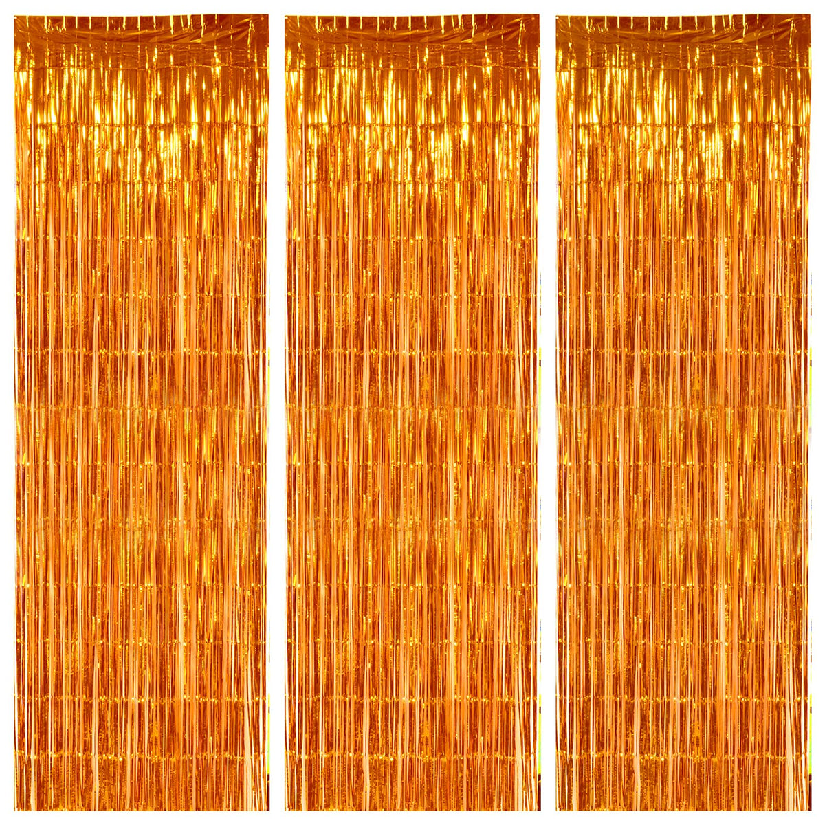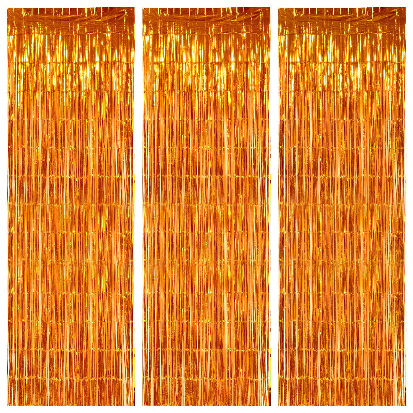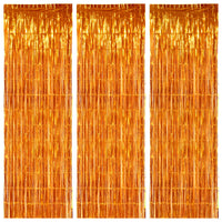 Toniful 3Pcs Orange Door Streamers,Photo Booth Backdrop Metallic Streamers Foil Fringe Curtains For Halloween Thanksgiving New Y