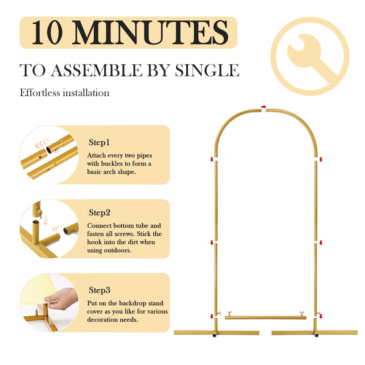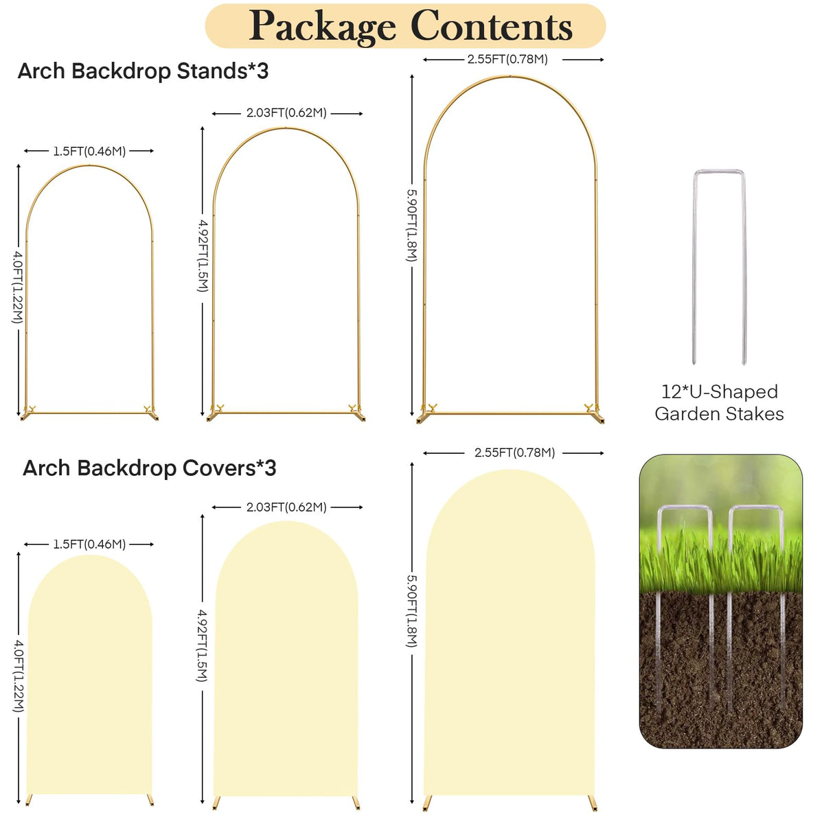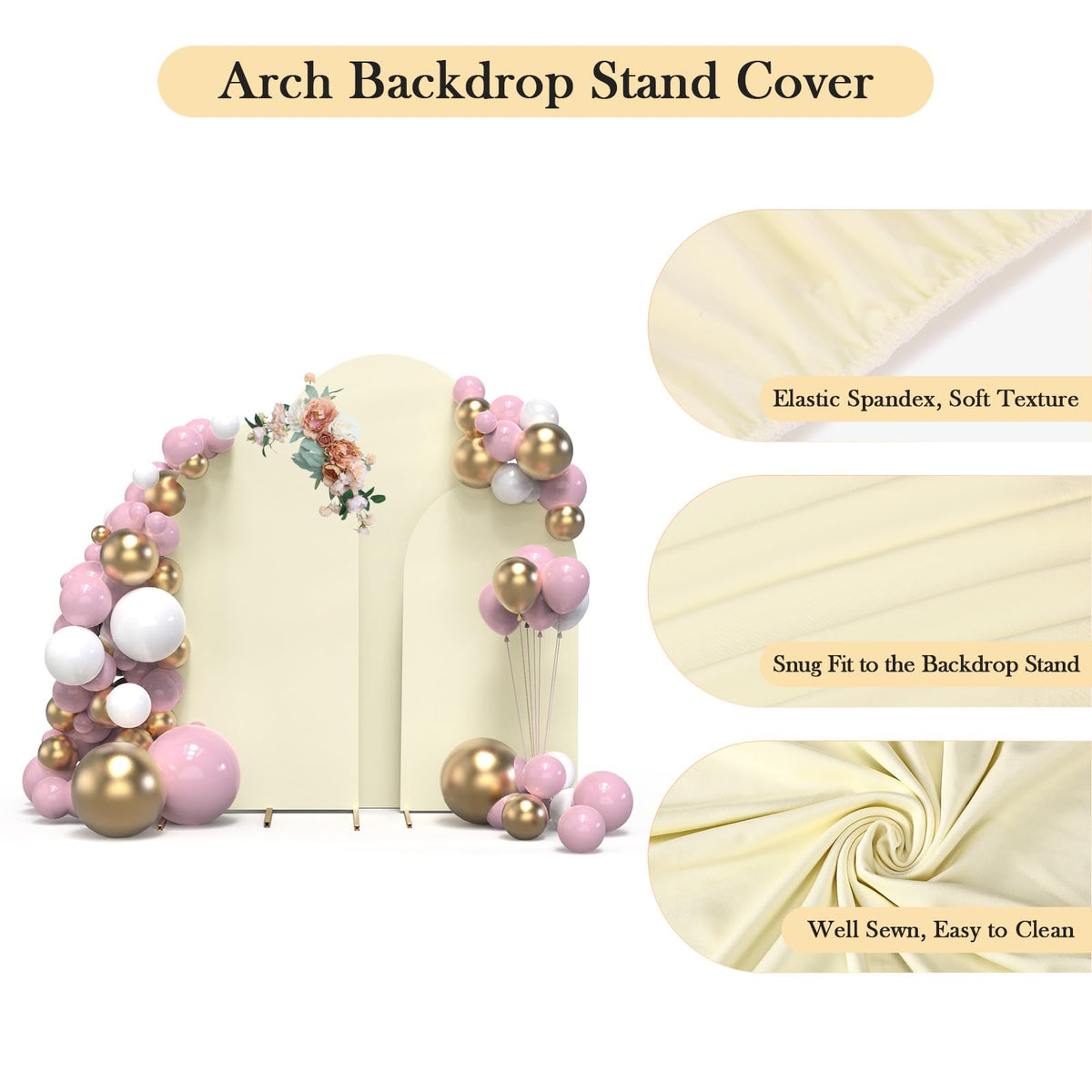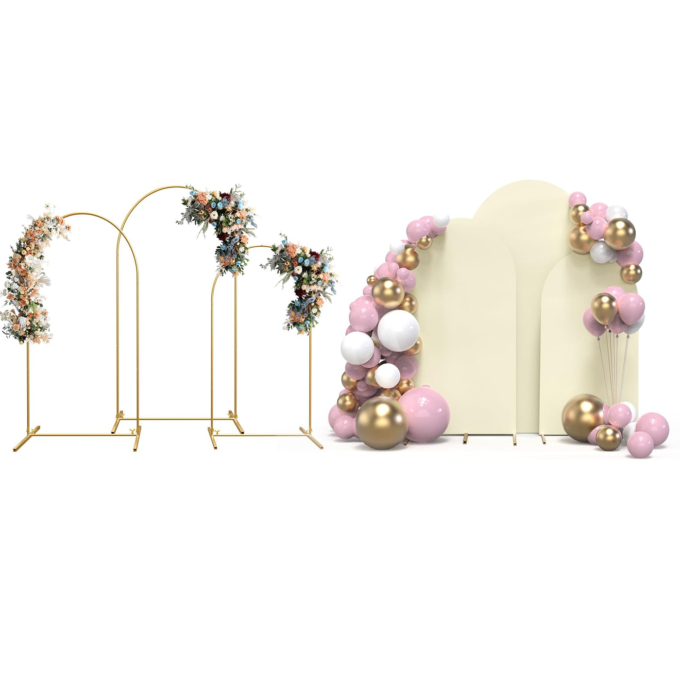 Elevate The Ambiance With Topdirect Arch Backdrop Stand Set Of 3. This Backdrop Stand Party Includes Three Versatile Sizes: 4Ft, 5Ft, And 6Ft, Offering Flexibility To Suit Various Venues And Decoration Needs. Crafted With Stable Metal, Our Wedding Arch Frame Provides Stability And Support For Your Decorations, Ensuring They Stay Securely In Place Throughout Your Celebration. Each Backdrop Arch Stand Comes With A Fitted Fabric Backdrop Cover, Adding Elegance And Style To Your Birthday Parties, Baby Showers, Wedding Ceremonies, Banquets, And More. The High-Quality Spandex Fabric Offers Excellent Elasticity, Allowing It To Stretch Without Deformation And Fit Snugly Without Wrinkles On The Gold Arch Backdrop. Additionally, The Fabric Is Lightweight, Soft, And Not See-Through, Providing A Professional And Polished Look To Your Event D Cor. With Backdrop Arch Stand With Cover, Decorating Has Never Been Easier. Whether You Prefer A Classic Or Modern Style, Unleash Your Creativity By Adorning The Arch Stand Backdrop With Flowers, Balloons, Greenery, Led Lights, Or Garlands. The Possibilities Are Endless, Allowing You To Create A Personalized And Stunning Backdrop That Reflects Your Unique Vision And Theme. Effortlessly Assemble And Customize Your Arches For Backdrop With The Included Instruction Manual, Making Setup A Breeze For Individuals Of All Experience Levels. Perfect For Birthdays, Baby Showers, Weddings, Ceremony, Birthday And Banquets. Create Stunning Backdrops For Photos, Speeches, Or Performances, Adding Charm And Sophistication To Every Moment. Especially For Event Planners, Decorators, And Diy Enthusiasts Alike, These Backdrop Stands Offer Versatility, Elegance, And Ease Of Use For All Your Decoration Needs. Make Your Next Celebration Truly Memorable With The Topdirect Backdrop Arch For Parties.