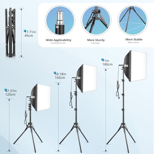 ?High Grade Softbox? Soft Box Nylon Reflector Is Made Of Superior Pet Fabric, Which Can Maximize The Capacity Of Lighting-Softening. Softer And More Uniform Light, Wider Lighting Range, And Remove Shadows, Offering You The Best Shooting Experience. | ?Energy Saving Bulb? Softbox Is Equipped With A 40W Energy Saving Light Bulb, Which Can Save Energy Up To 80% And Last Approx 10000 Hours. With 6500K Color Temperature, Bulbs Work At A Lower Temperature And Provide A Better Photography Environment. | ?Long-Lasting Tripod Stand? Equipped With A Tripod Stand Which Is Made Of Premium Aluminum-Alloy Material, Easily Resist Scratches From Hard Objects, Firm Enough To Support Longer Service Life, Provides Great Safety For Your Lighting Softbox. | ?Rotatable & Adjustable? Extendable Tripod Can Be Flexibly Adjusted Between 47.37'' And 71'', With Stable 3-Legs Stage And Quick Single Action Lock. In Addition, Soft Box Comes With 210