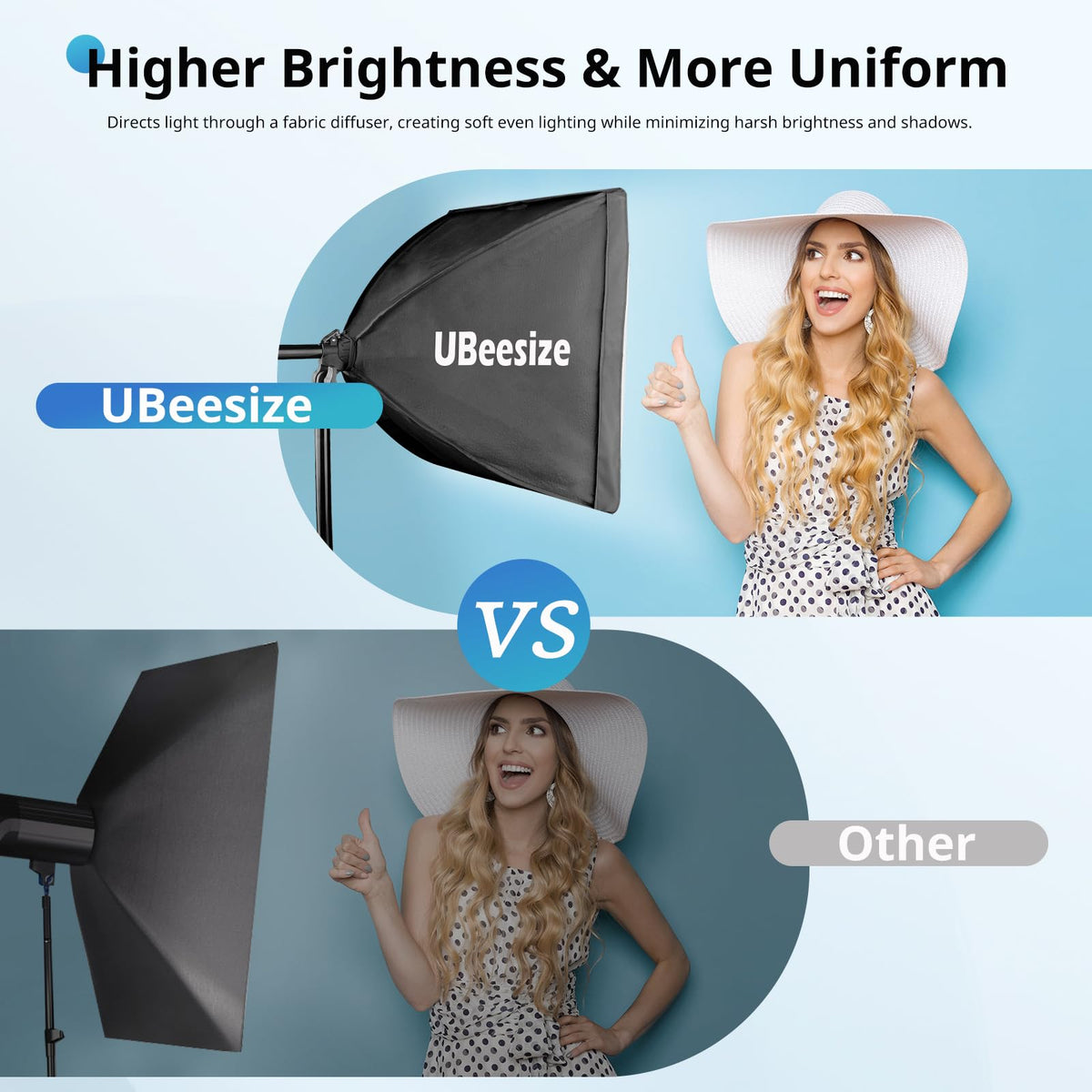 Ubeesize Softbox Photography Lighting Kit, 16 X 16 Continuous Lighting Kit With 40W E27 Socket 6500K Bulb, Professional Ph