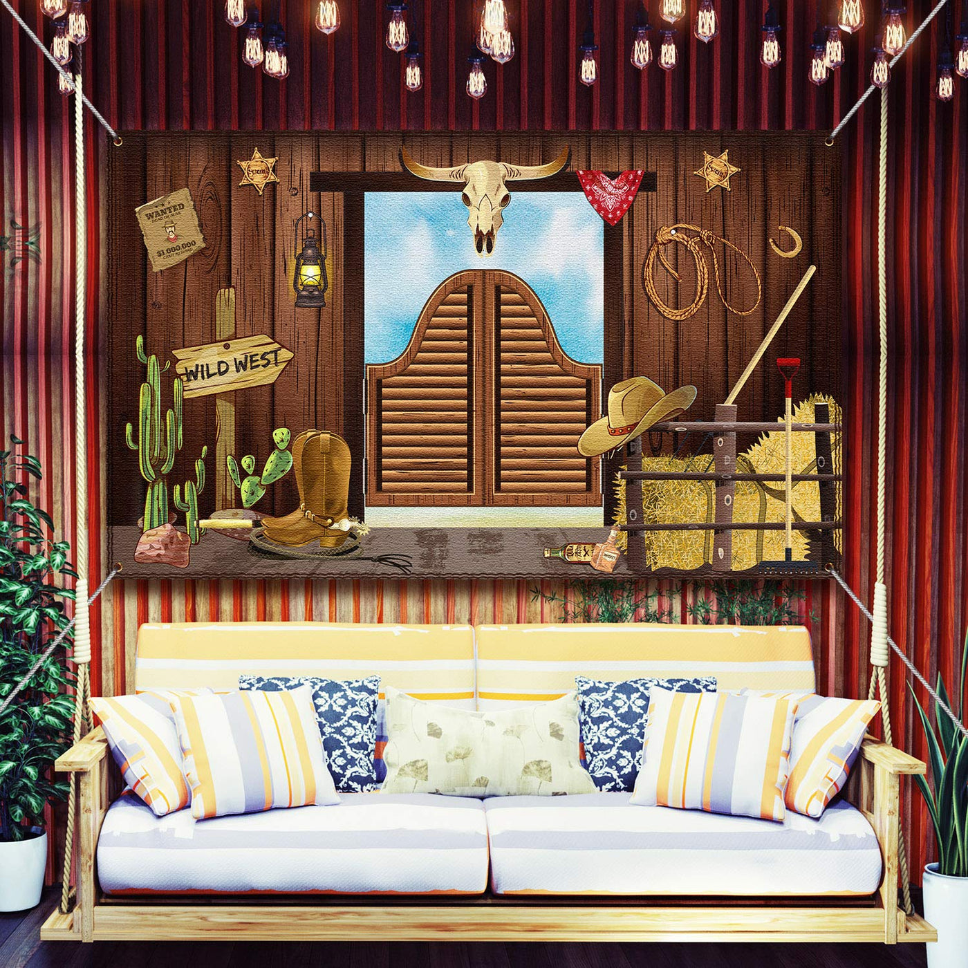 Easy To Use: Comes With 4 Rope Hole For Hanging It Up Well Through The Copper Grommet, Attaching Some Weight To Keep The Banner Straight. The Copper Grommet Will Not Rust, This Western Cowboy Party Banner Is Reusable And Washable.