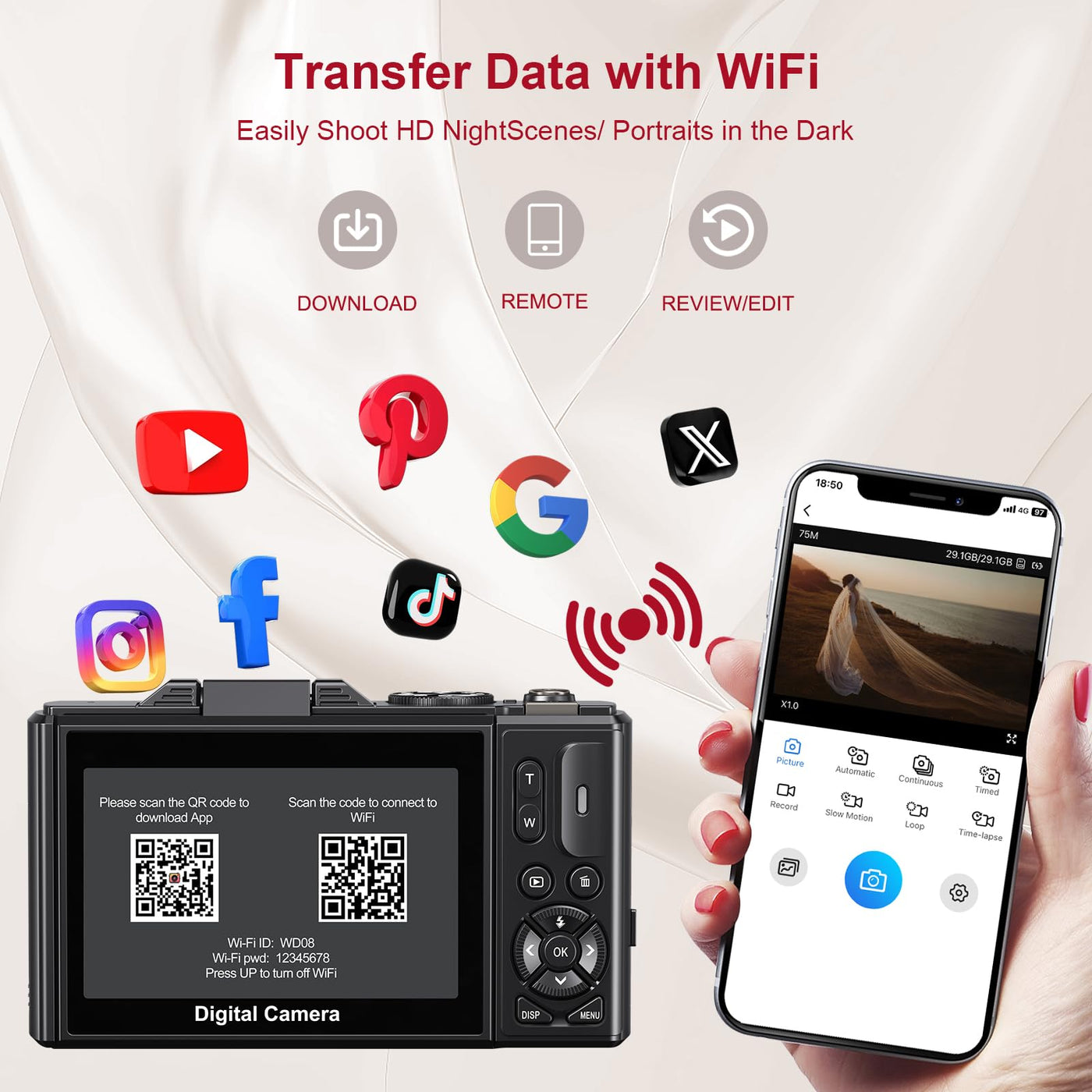 Digital Cameras For Photography - 5K 75Mp Vlogging Camera For Youtube Wifi - Uhd Autofocus Vlog Camera 3 180 Flip Screen With 18