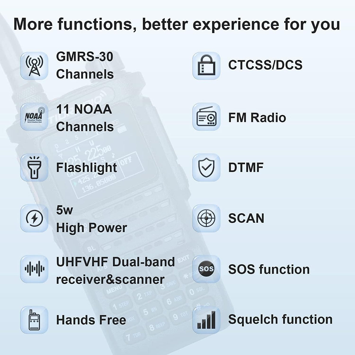 Q: What safety features does the TIDRADIO H8 include?A: The TIDRADIO H8 includes several safety features such as Busy Channel Lockout, Transmit Time-Out, and NOAA Radio for emergency alerts, ensuring users stay informed and safe during their communication.