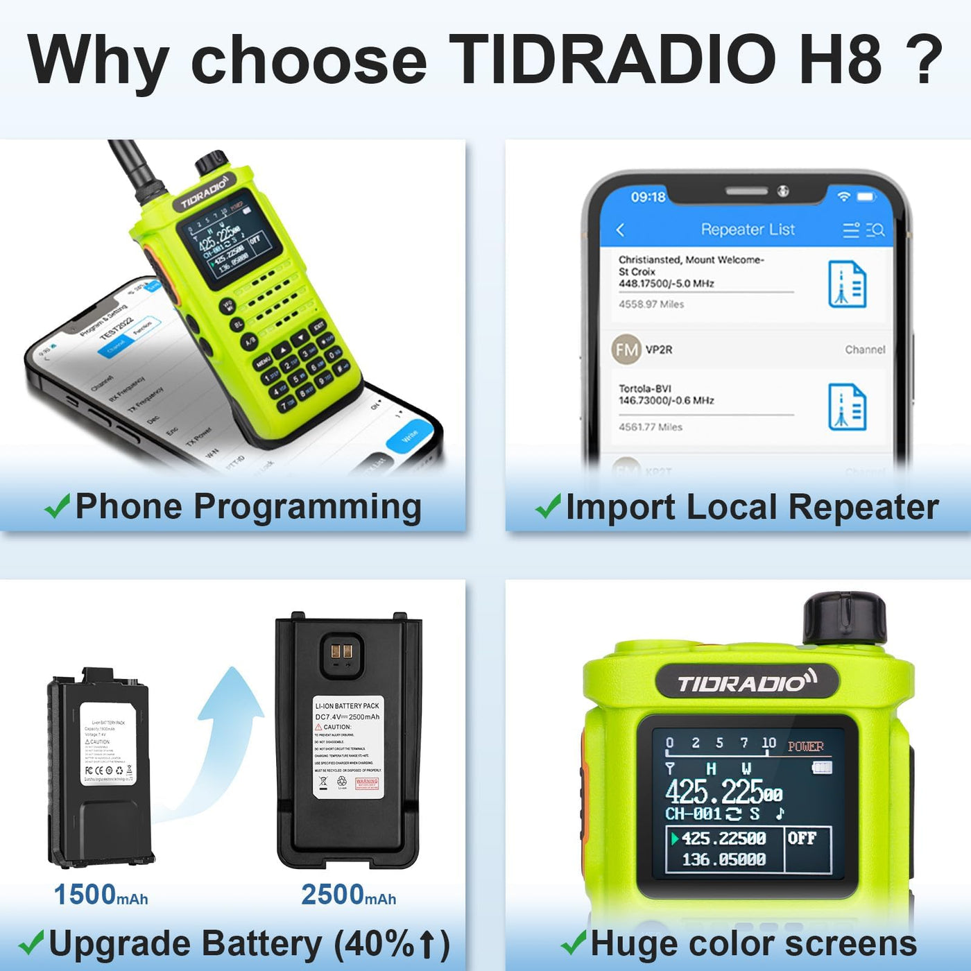 Tidradio Td-H8 H8 Gmrs Radio App Wireless Programmable & Gmrs Repeater Capable, Gmrs Handheld Radio, Long Range Two Way Radio With 1.77Inch Lcd Screen & 2500Mah Rechargeable Battery(1St Gen Improved)