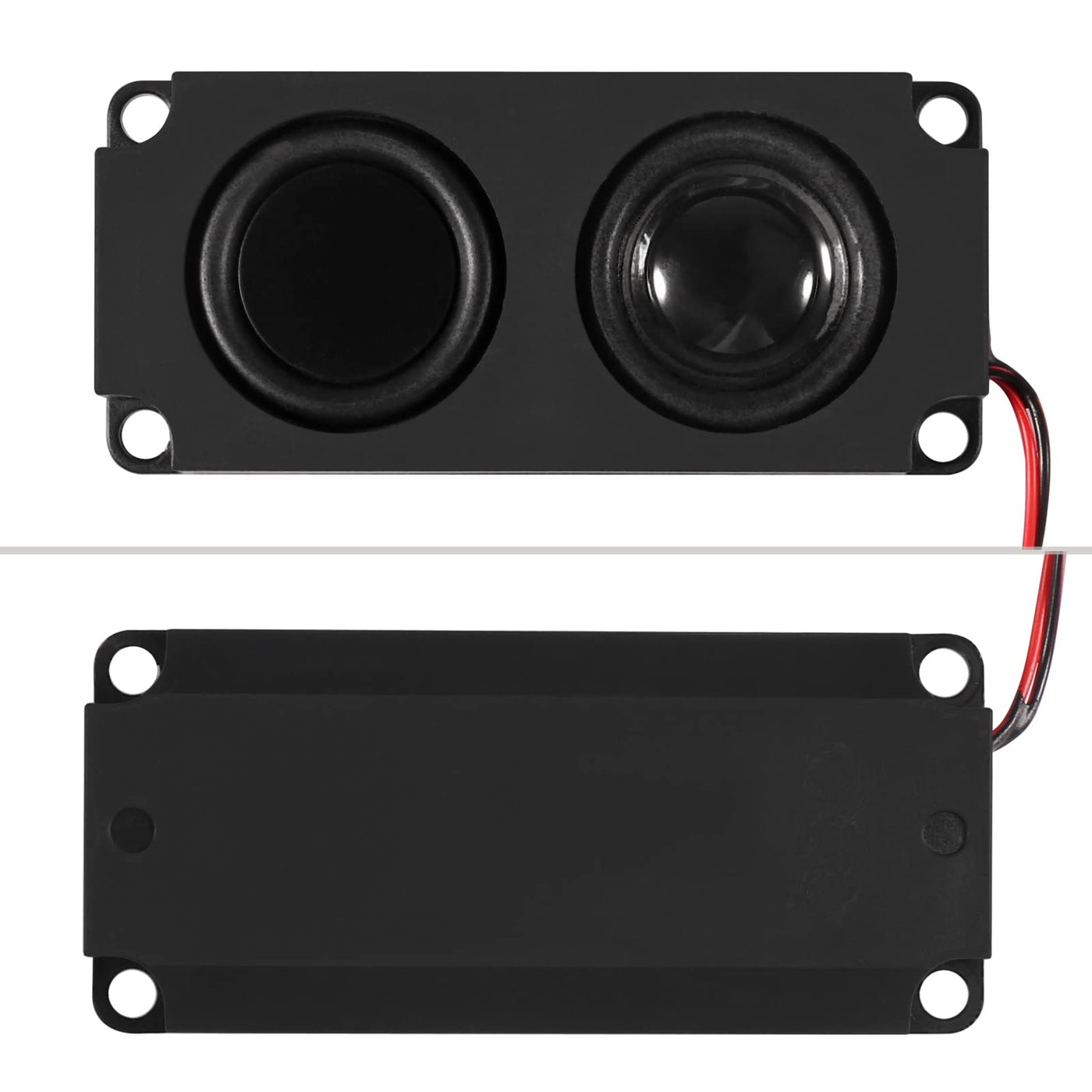 Feature: 1. The Cavity Adopts High-End 40Mm Internal Magnetic Speaker, Stable Performance. 2. The Entire Cavity Is Tightly Sealed And With Large Volume, Sturdy And Durable. 3. Wide And Full Range, Clear Sound Quality, Heavy Bass, Bringing Great Using Experience. 4. Application: All Kinds Of Digital Products Such As Advertising Machines, Lcd Tv, Monitors, Sofa Massage Chairs, Etc. 5. Small Size And Portable, Convenient And Reliable To Use, Long Life Service. Specification: Item Type: Speaker Condition: 100% Brand New Material: Abs Color: Black Size: Approx. 99X45X21Mm/3.9X1.8X0.8In Impedance: 8O Power: 5W Built-In Speaker: 40Mm Dual Magnet Package List: 4X Speakers