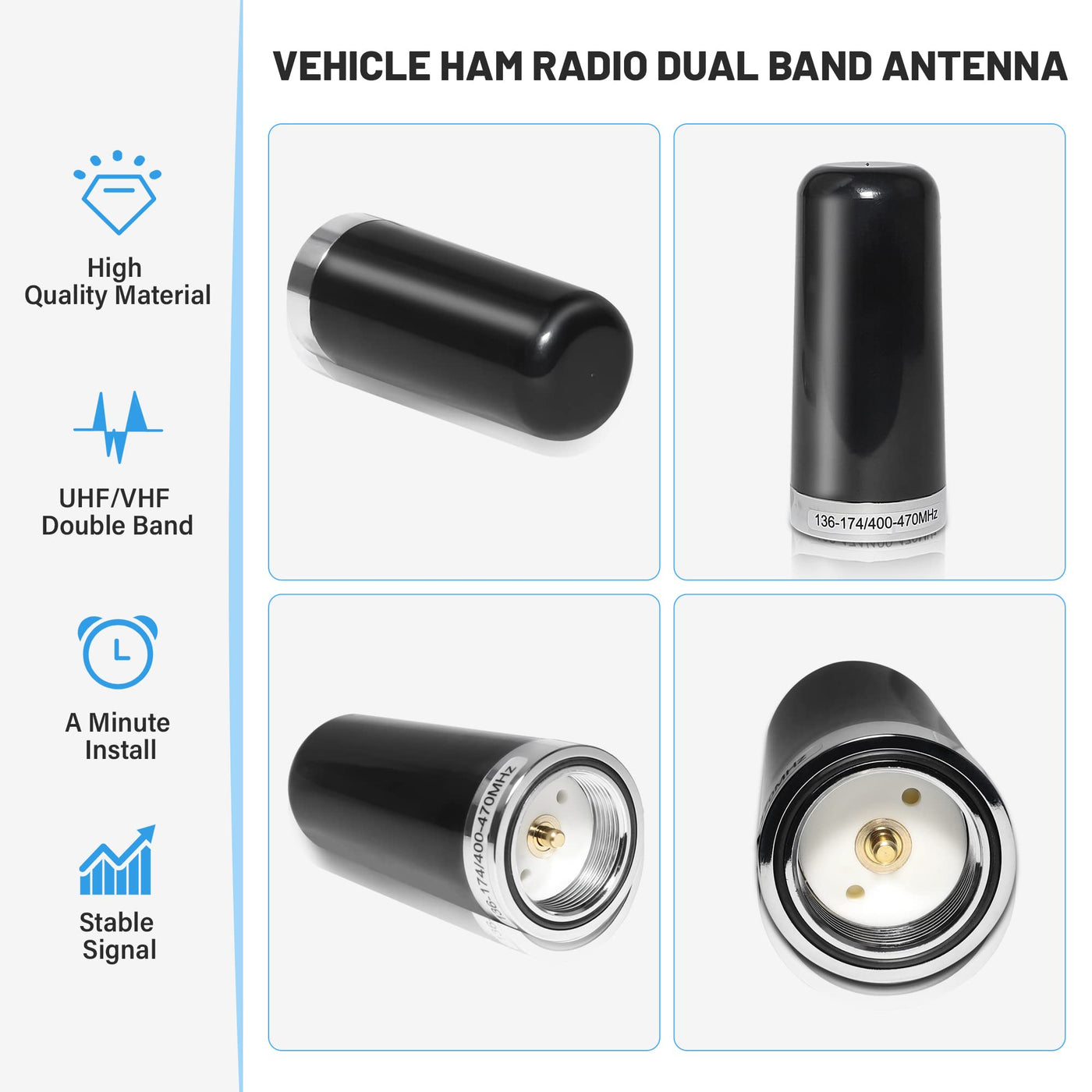 Q: What is the frequency range of the Anina 3.5 Inch NMO Antenna?A: The Anina 3.5 Inch NMO Dual Band Antenna operates within a frequency range of VHF: 136-174MHz and UHF: 400-470MHz, making it suitable for various radio communications.