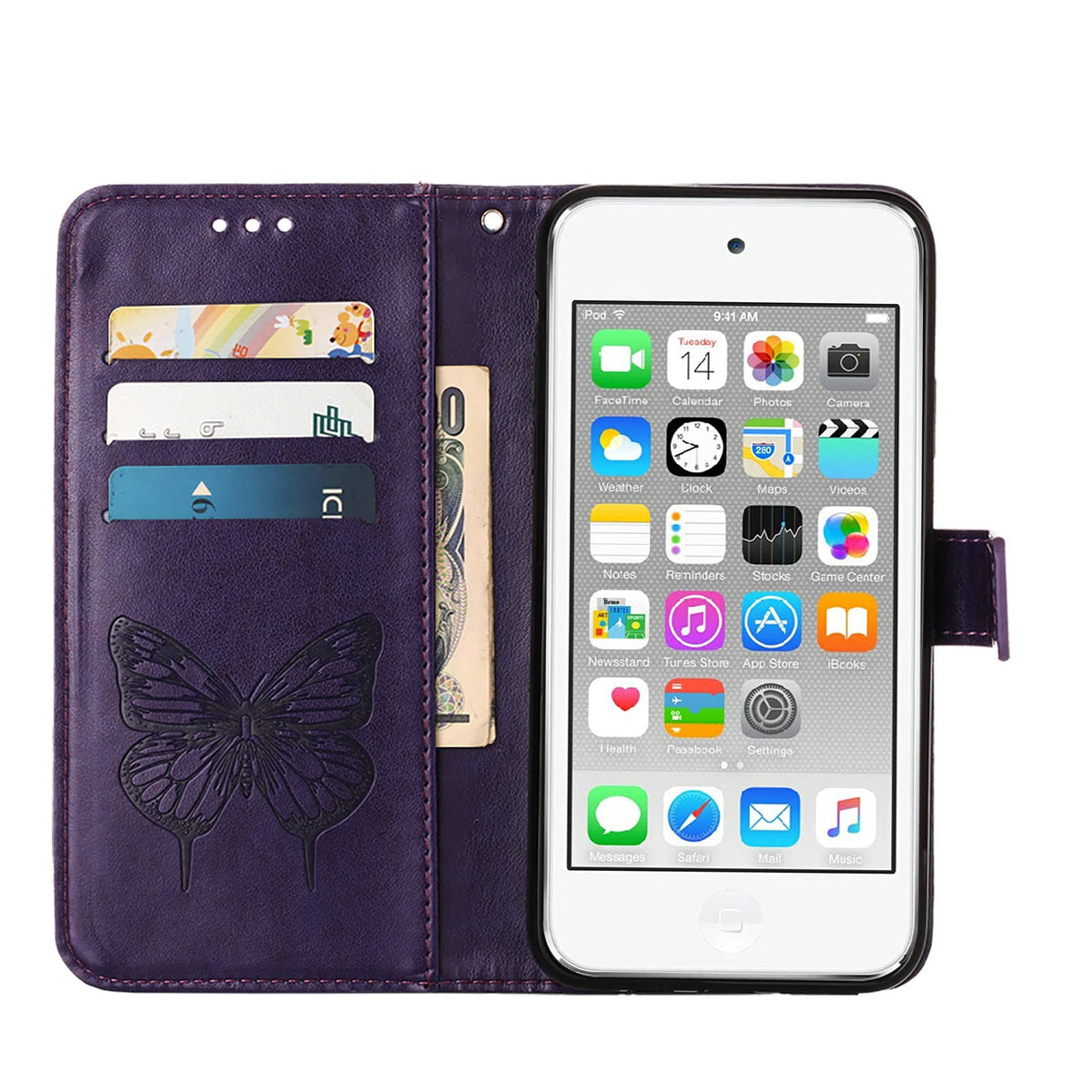 Q: Is this wallet case compatible with iPod Touch 7, 6, and 5?A: Yes, this wallet case is specifically designed to be compatible with iPod Touch 7, iPod Touch 6, and iPod Touch 5 models.