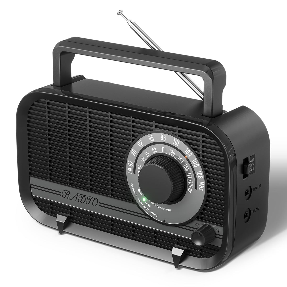 Audiocrazy Am Fm Radio Plug In Wall Or Battery Operated Radio With Best Reception,Portable Radio With Bluetooth,Transistor Radio With Headphone Jack,Large Dial Easy To Use For Seniors Elderly Black