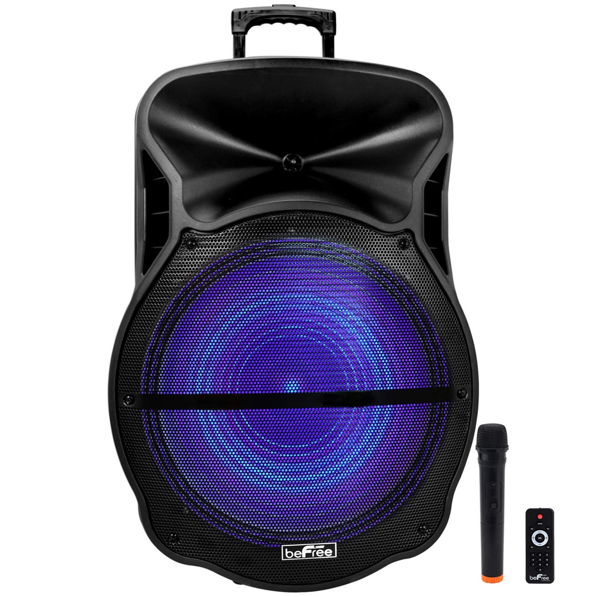'The Befree Sound 18 Inch Bluetooth Portable Rechargeable Party Speaker With Sound Reactive Led Party Lights, Usb/Sd, Microphone/Guitar Inputs And Fm Radio Is The Party Sidekick Youve Been Searching For. This Easily Portable Speaker Includes Hard Mounted Top Handles For Your Convenience, And Boasts A Large Frame To Ensure It S Highly Visible. With Such A Colorful Light Show Display, This Sound System Is Sure To Pump Up The Party In Whole New Way. While Your Guests May Already Enjoy Your Music Selections, This Speaker Will Help You Take Your Entertaining To Higher Level. You Can Connect A Variety Of Devices, And Choose The Input That Is Best To Suit Your Needs. You Always Have The Option Of Turning Off The Reactive Light Show For Those More Subtle Gatherings, Allowing Yourself To Enjoy The Strong, Clear Sound Provided By The 18 Inch Subwoofers. This Is An Ideal Unit For Public Speaking As It S Conveniently Transportable, Powerful And Youll Receive A Wireless Microphone In Addition To A Remote Control. 18'' Wooferusb/Sd/Tf Compatiblewith Bluetooth Wireless Microphone Connectionwith Fm Radioone Wireless Microphone Included. One Microphone Input Jack And One Guitar Input Jackwith Microphone Priority Functionwith Colorful Light On Wooferrca Input And Output7. 2Ah Rechargeable Batterytrolley And Wheel Easy For Carry
