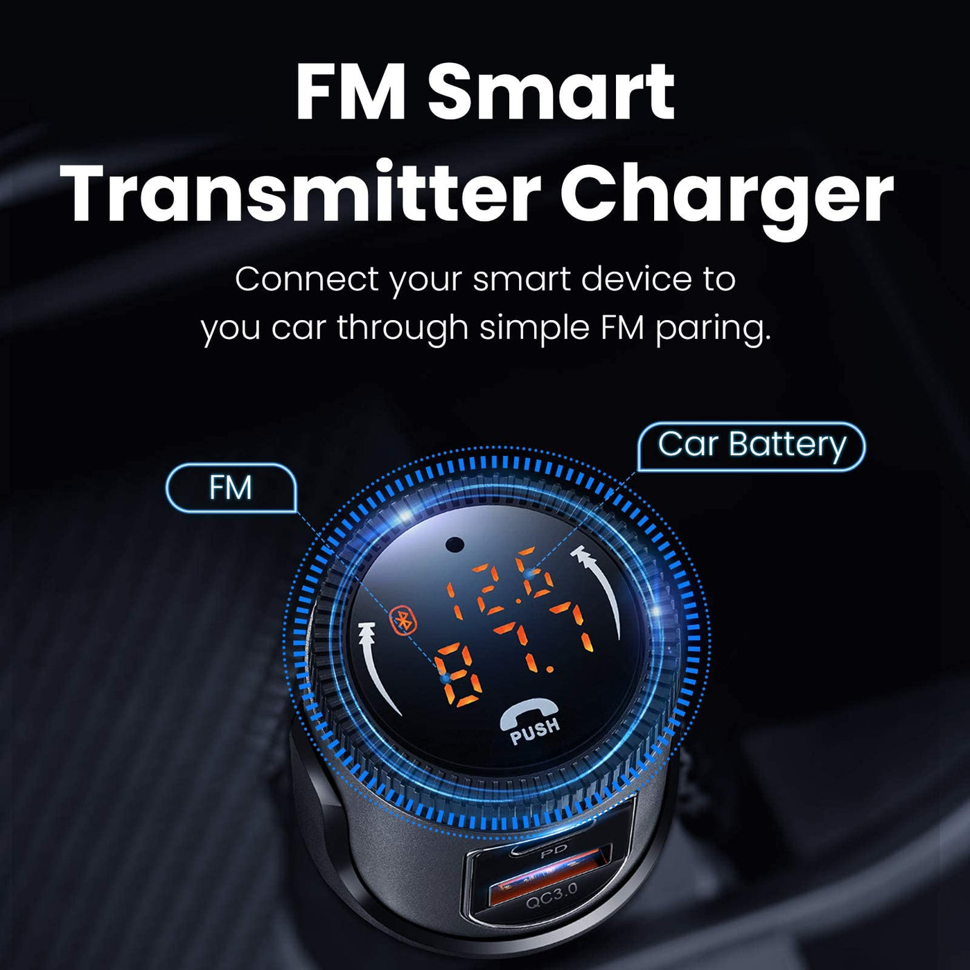 Bluetooth 5.1 Fm Transmitter For Car, Wireless Bluetooth Car Adapter With 36W Qc 3.0 + Pd 3.0 Usb C Fast Charger, Car Radio Tran