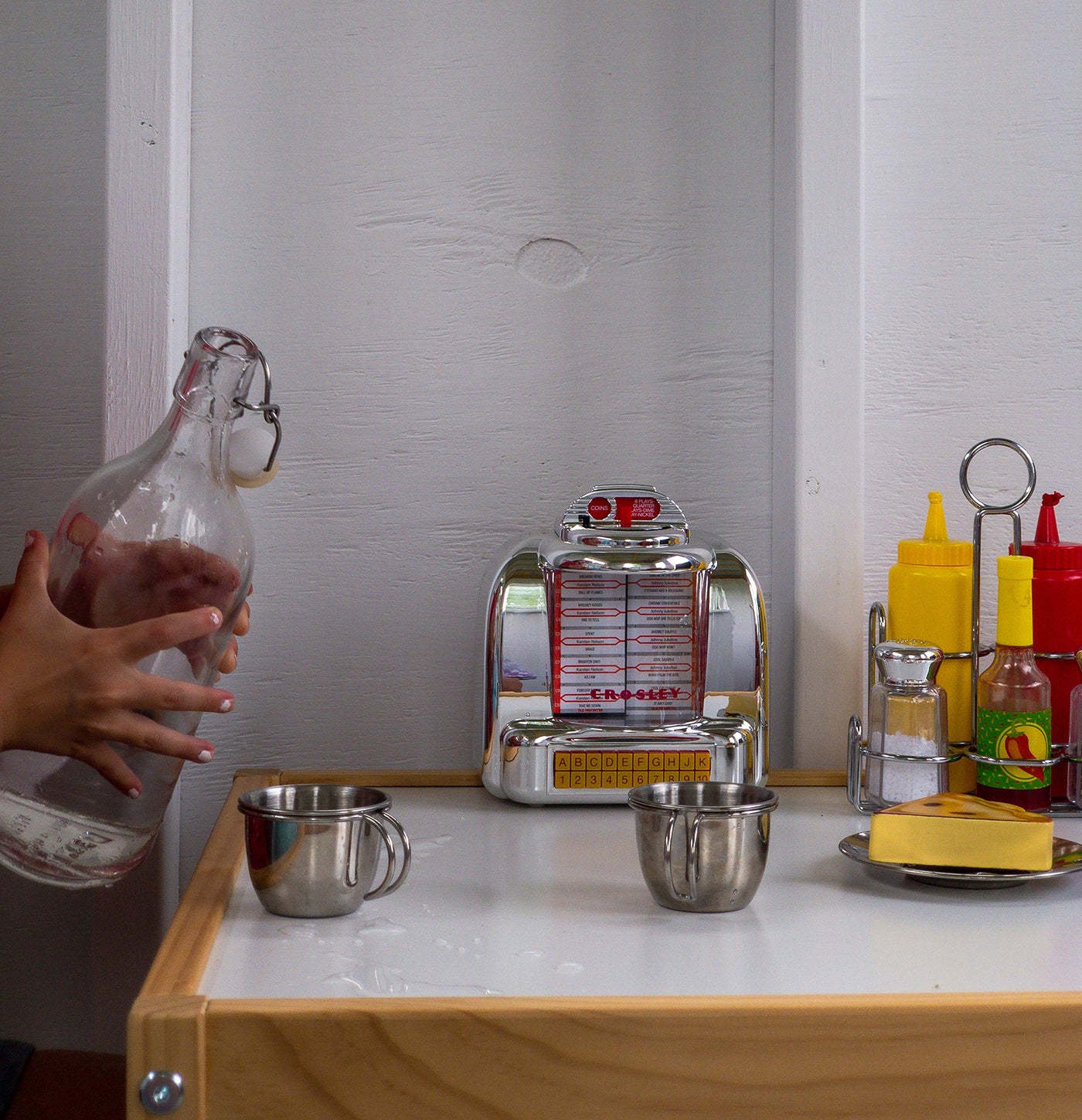 Step Back In Time With The Crosley Diner Jukebox Radio And Bluetooth Speaker. Relive The Nostalgia As You Scan And Enjoy Your Favorite Fm Stations Or Stream Digital Tunes From Your Smartphone Via The Built-In Bluetooth Receiver. The Front Of The Jukebox Features Faux Song Selection Buttons, Flipping Title Cards, And A Red Light On The Top That Lights Up When Powered On. On The Side, Youll Find The Volume Knob, Bluetooth Pairing Button, And A Micro-Usb Power Port, While The Back Houses A Built-In Full-Range Stereo Speaker. Compact And Charming, This Mini Jukebox Is A Perfect Addition To Your Work Desk Or Home Decor. Either Way, Its Sure To Start A Conversation.