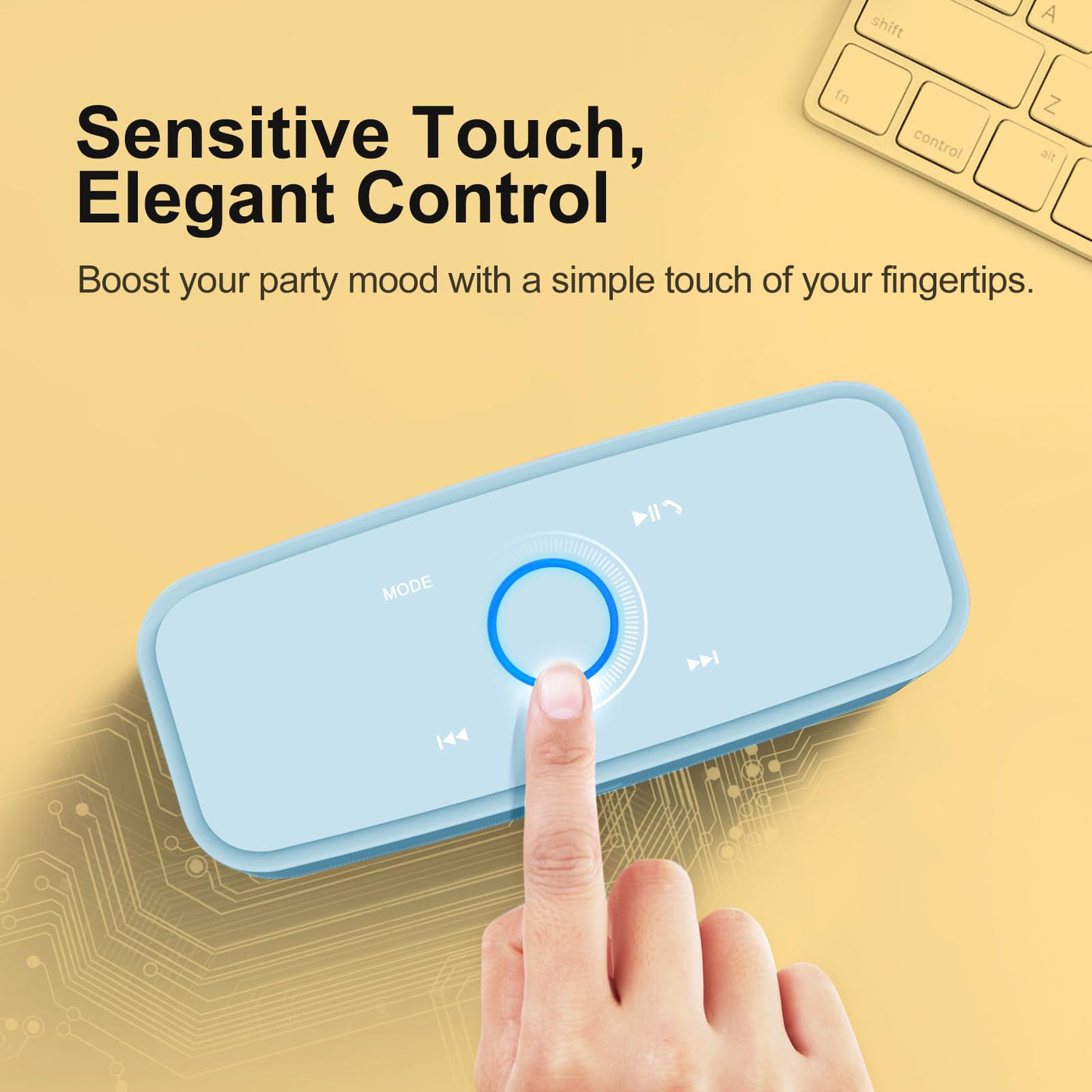 Q: How does the touch control feature work on the DOSS speaker?A: The DOSS speaker features capacitive touch control, allowing you to easily manage your music playback, volume, and track selection with just a fingertip, enhancing your listening experience.