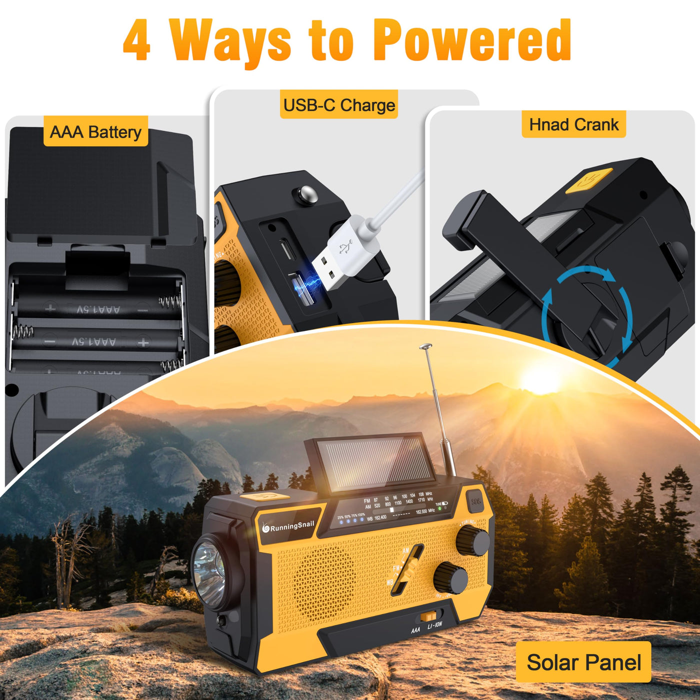 - Emergency Crank Radio With 4 Ways To Power,&Nbsp; Not Only Easily Recharged By Usb-C/Hand Crank/Solar Panel, Also Equipped With A Backup Battery Compartment(3Pcs*Aaa Batteries, Not Included).
