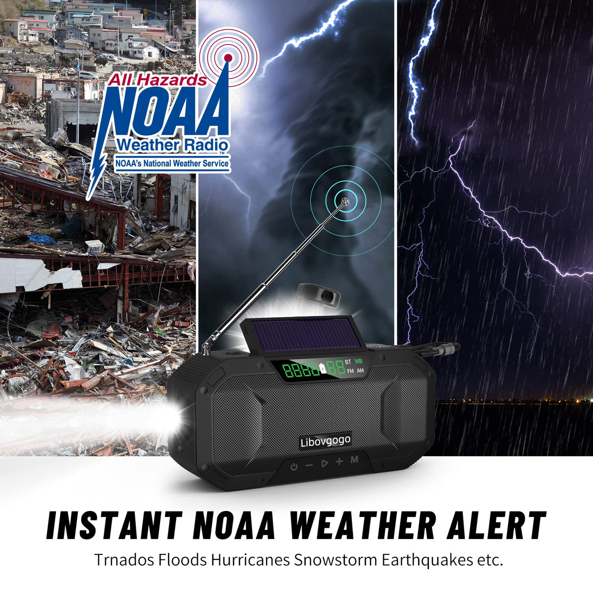 Auto Scan Digital Am Fm Wb Noaa Weather Radio,Portable Hand Crank Radio With Loud Stereo Bluetooth Speaker,Waterproof Wind Up Solar Emergency Radio,Sos Alert,5000Mah Cell Phone Charger,Flashlight,Battery Backup Buy 1 Get 9 Am Fm Radio Wb Noaa Weather Radio 7W Waterproof Bluetooth Speaker 5000Mah Cell Phone Charger 3W Flashlight 3W Reading Lamp Sos Siren Compass Carabiner