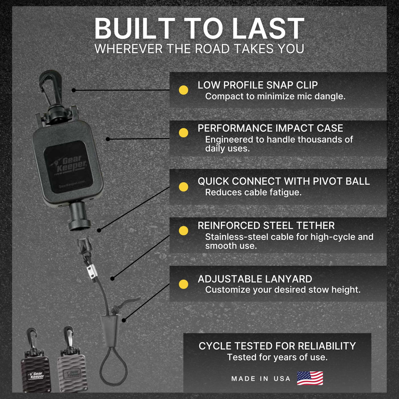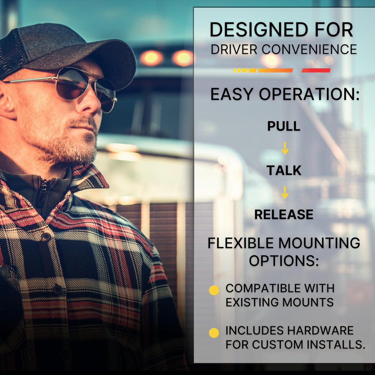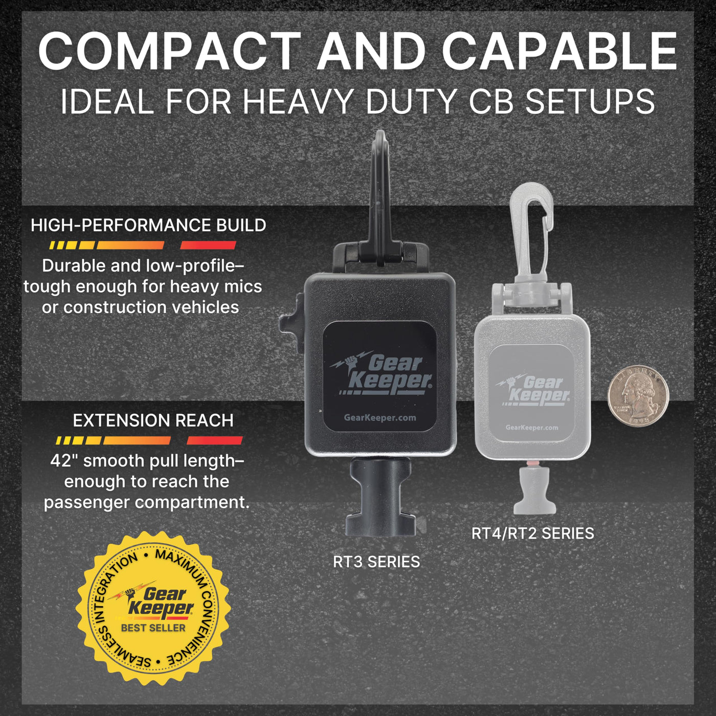 Keep Your Cb Radio Microphone Secure And Out Of The Way With The Gear Keeper Heavy-Duty Cb Mic Kit Holder. Designed With A Smooth 12Oz Retraction Force And A 42 Extension, It Offers Effortless Use Without Fatigue Or Distraction While Driving. Built For Professional Drivers, Our Cb Radio Mic Must-Have Truck Accessories Eliminates The Hassle Of Re-Hanging Your Mic. Simply Grab, Use, And Let It Retract. Made With Industrial-Grade Materials And A Q/C Ii Disconnect System, Its Engineered To Withstand Any Driving Conditions. Includes 2 Mounting Options For Quick Mounting. The Included Adjustable Lanyard Lets You Position Your Mic At The Perfect Height For Easy Access. Ideal For The Heavy-Duty User, Heavy Mics, Construction Vehicles Or When Extension To The Passenger Compartment Is Required. With Over 20 Years Of Trusted Experience, Hammerhead Industries Delivers Reliable Solutions For Drivers Who Demand The Best.