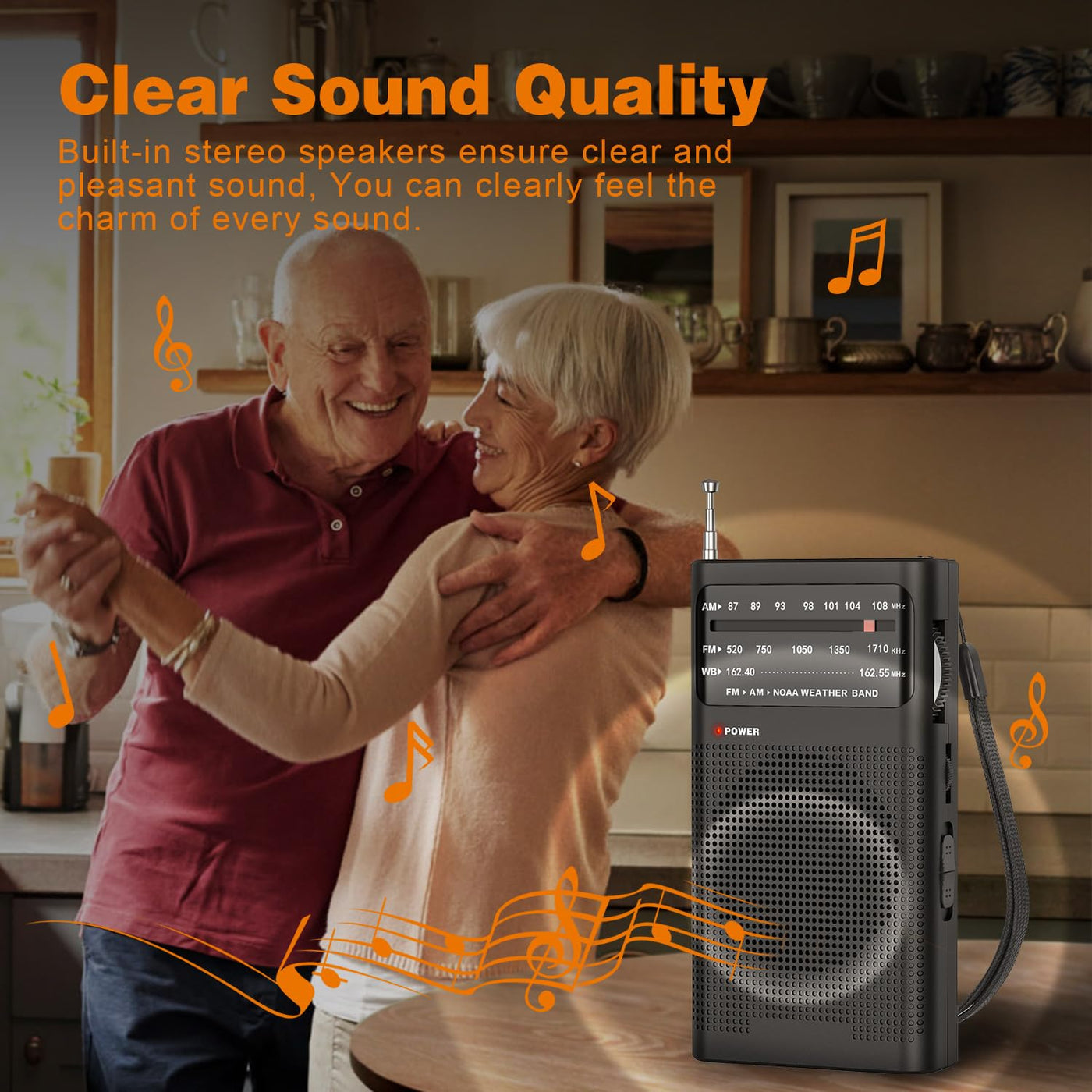 Portable Survival Radio Wb Am Fm It'S A Radio Without Any Bells And Whistles, It Can Pick Up Multiple Stations, And It'S Very Easy To Use. There'S A Speaker Hole On The Back And Front, It Sounds Like A Stereo, And As A Small Radio, Not Only Does It Pick Up Noaa Weather Channels Clearly, Am/Fm Works Great Too, Giving You Some Comfort In Bad Weather. ? Can Be Used In Various Scenarios, Such As Home, Going Out, Traveling, Entertainment, Work, Study, Etc. Suitable For All People. ? This Portable Radio Is No Longer A High-Tech Electronic Product, It Is Designed With Simple Buttons And Easy To Operate, It Is The Perfect Gift For The Elderly And Children! Product Features: 1. Wider Signal: 2-Band Fm: 87-108Mhz/Am: 520-1710Khz. 2. Stronger Signal Reception: 6-Section 15.7-Inch Telescopic Antenna, Perfectly Receiving All Frequency Bands In The Area. 3. Equipped With High-Quality Stereo Speakers, The Sound Quality Is Clear And Pleasant. 4. Independent Headphone Jack, Can Insert 3.5Mm Headphone. 5. Two Charging Modes, Battery Powered Or Ac Powered. Package: Portable Weather Radio X1 Manual X1 Note: 1. If You Hear Noise, You Can Improve It By Adjusting Your Position And Staying Away From Your Phone Or Other Interfering Devices. 2. The Product Does Not Include Batteries. 3. It Is Recommended To Use Duracell Or Varta Batteries, Which Will Last Longer! 4. When Using Headphones To Listen To The Radio, Please Turn Down The Volume So As Not To Hurt Your Ears. Please Let Me Know If You Have Any Problems Using It.