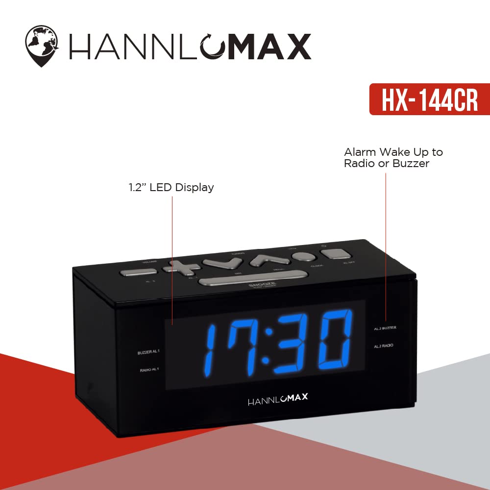 Hannlomax Hx 144Cr Alarm Clock Radio, Pll Am/Fm Radio, 1.2'' Led Display, Digital Clock With Dual Alarm, Ac Operation Only. (Bla