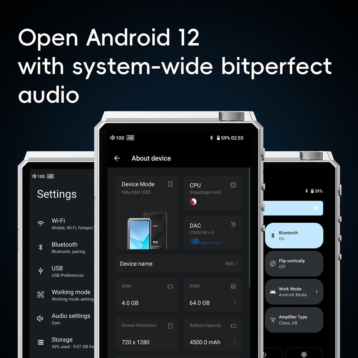 Hiby R6Iii 2025 Dap Player Hi Res Audio With Class A&Ab Amp/Android 12 / Bluetooth 5.0 / Wifi /64G+2Tb Expandable Memory