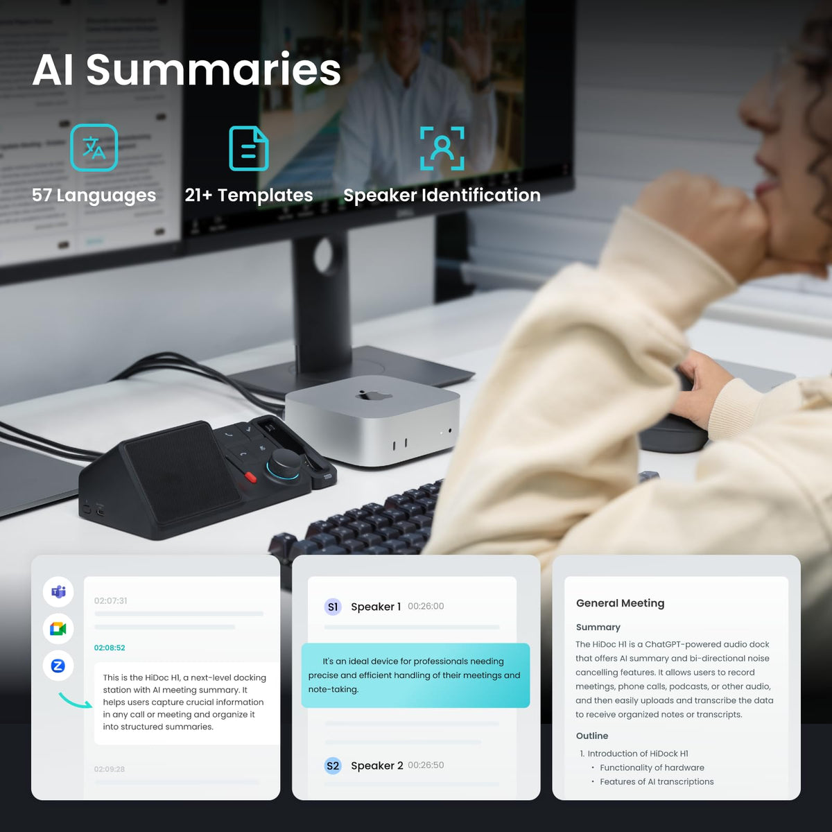 Hidock H1E: 8 In 1 Usb C Docking Station With 4K Hdmi Monitor, Ai Voice Recorder, Transcription And Summary Features, 1Gbps Ethe