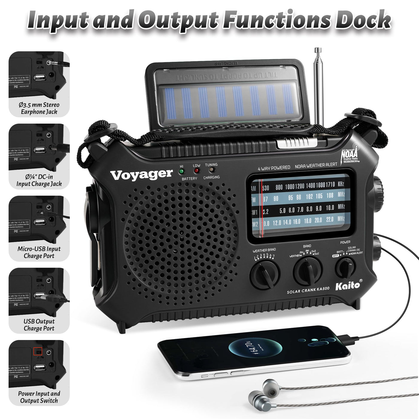 Kaito Ka500 5-Way Powered Emergency Am/Fm/Sw Noaa Weather Alert Radio With Solar,Dynamo Crank,Flashlight And Reading Lamp, Color Black