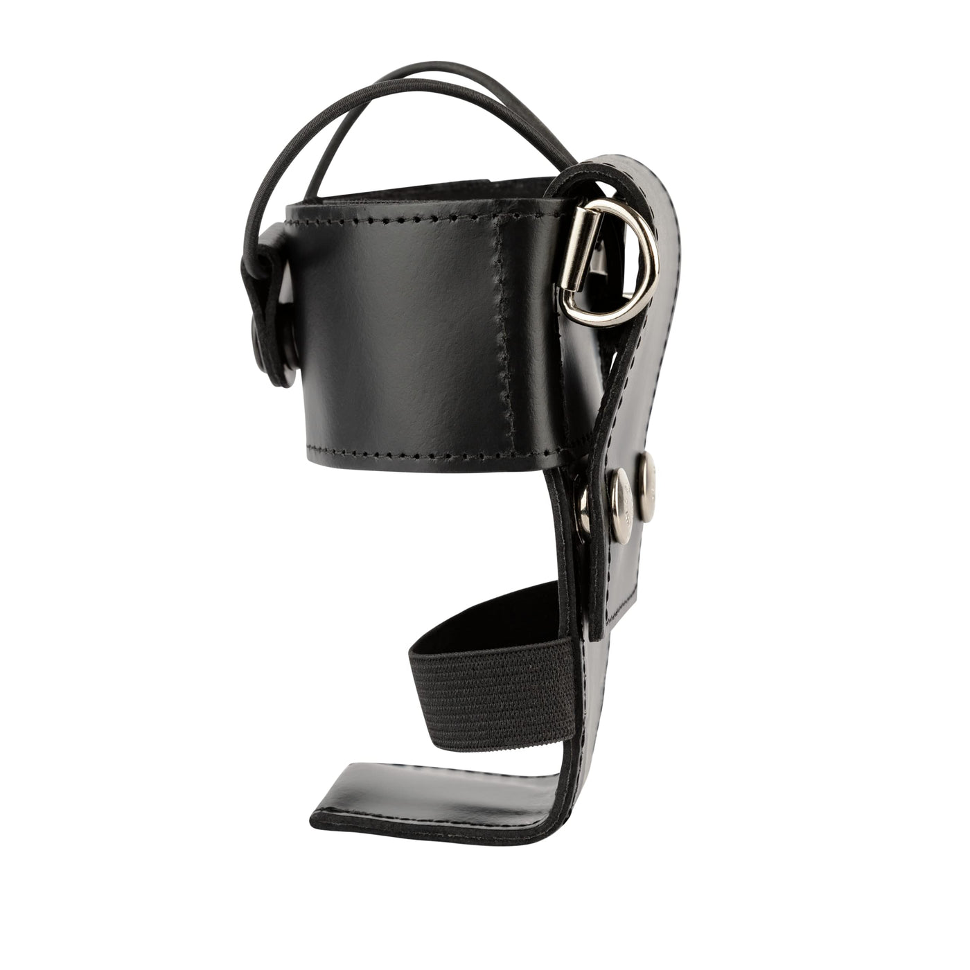 L-Style Adjustable Radio Holder With Shelf And Elastic Strap | Universal Fit Two Way Radio Holder Carrier Is Made Of Genuine Leather | Adjustable Elastic Bands To Keep Radio In Place With D Rings And Belt Slide | Hook And Loop Closure Can Adjusts To Accept Almost Any Hand-Held Radio | All The Items Are Made Out Of Quality Genuine Leather And Drum Dyed So The Black Color Penetrates All The Way Through The Leather. This Helps It Easily Hid Any Scratches And Wear And Tear. Made In Usa