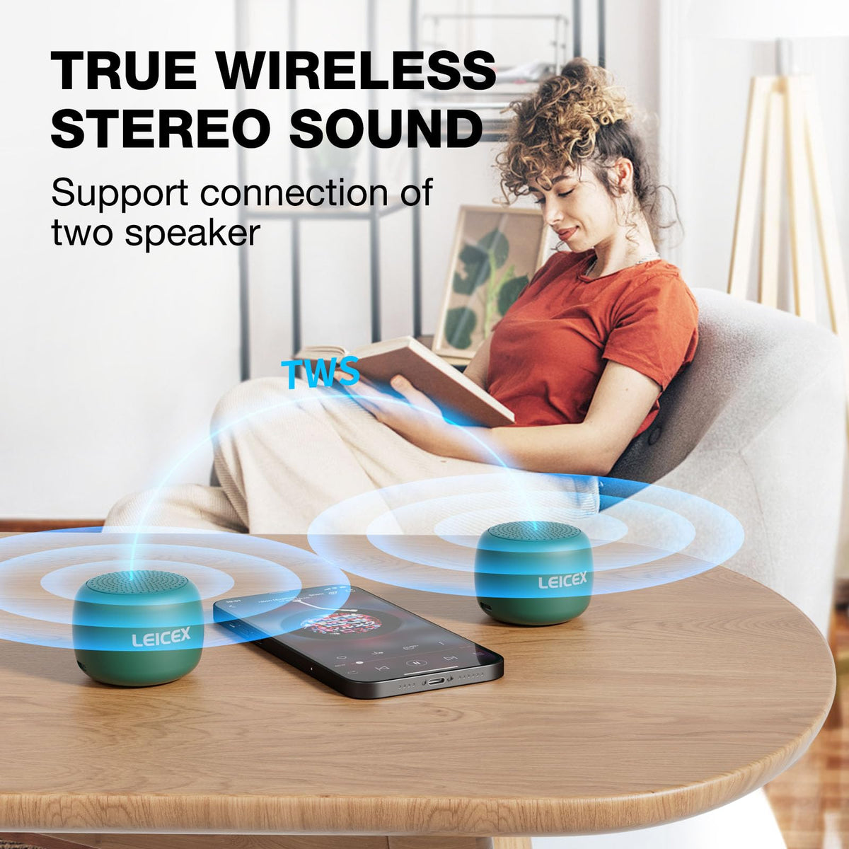 Leicex Mini Bluetooth Speaker Wireless,Small Speaker Support Tws Stereo Sound.Portable Speaker For Travel,Gift,Mobile Phone.(Gre