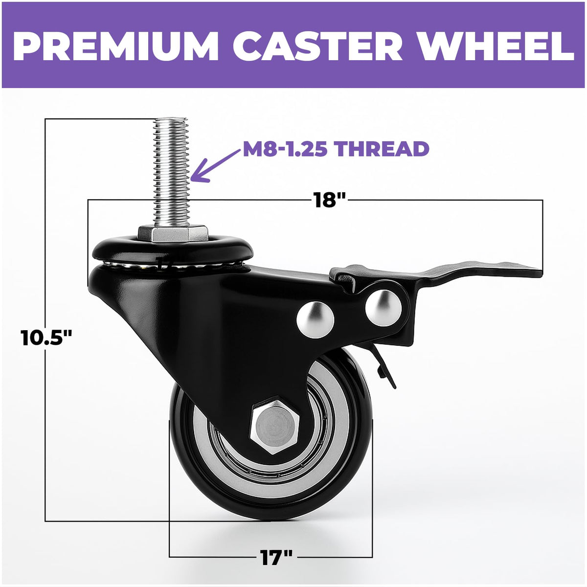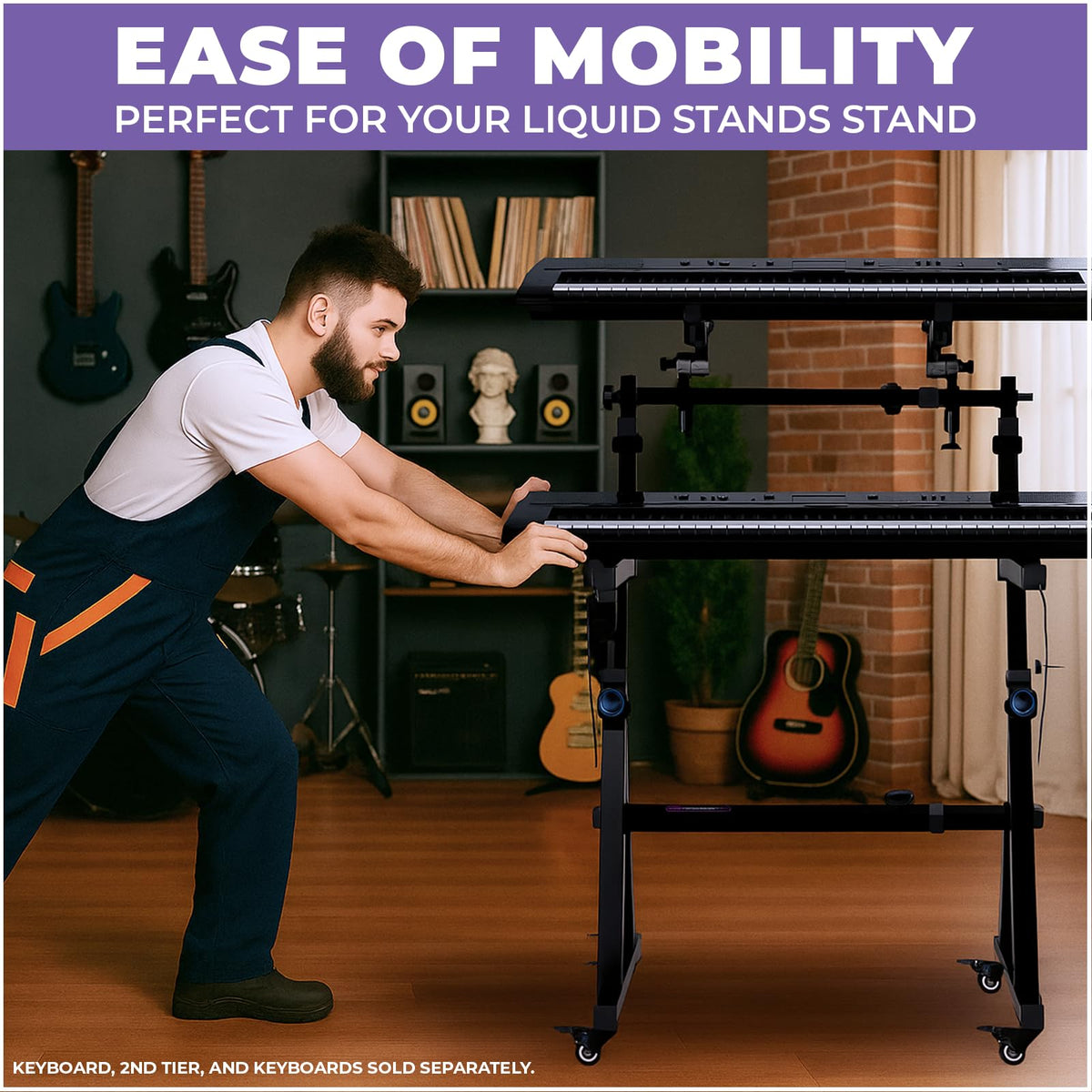 Liquid Stands Four-Pack Of Locking, Caster Wheels Are A Great Addition To Liquid Stands Ms1078 Keyboard Stand Or Are Great Replacement Wheels For The Liquid Stands Ms1080 Keyboard Stand Each Wheel Has A Diameter Of 15 Inches, While The Full Caster Measures 35A X 35A, With A Thread Size Of (8Mm X 25Mm) These Rubber Wheels Easily Lock Into Place, So You Can Be Confident That Your Stand Wonat Move Unless You Want It To