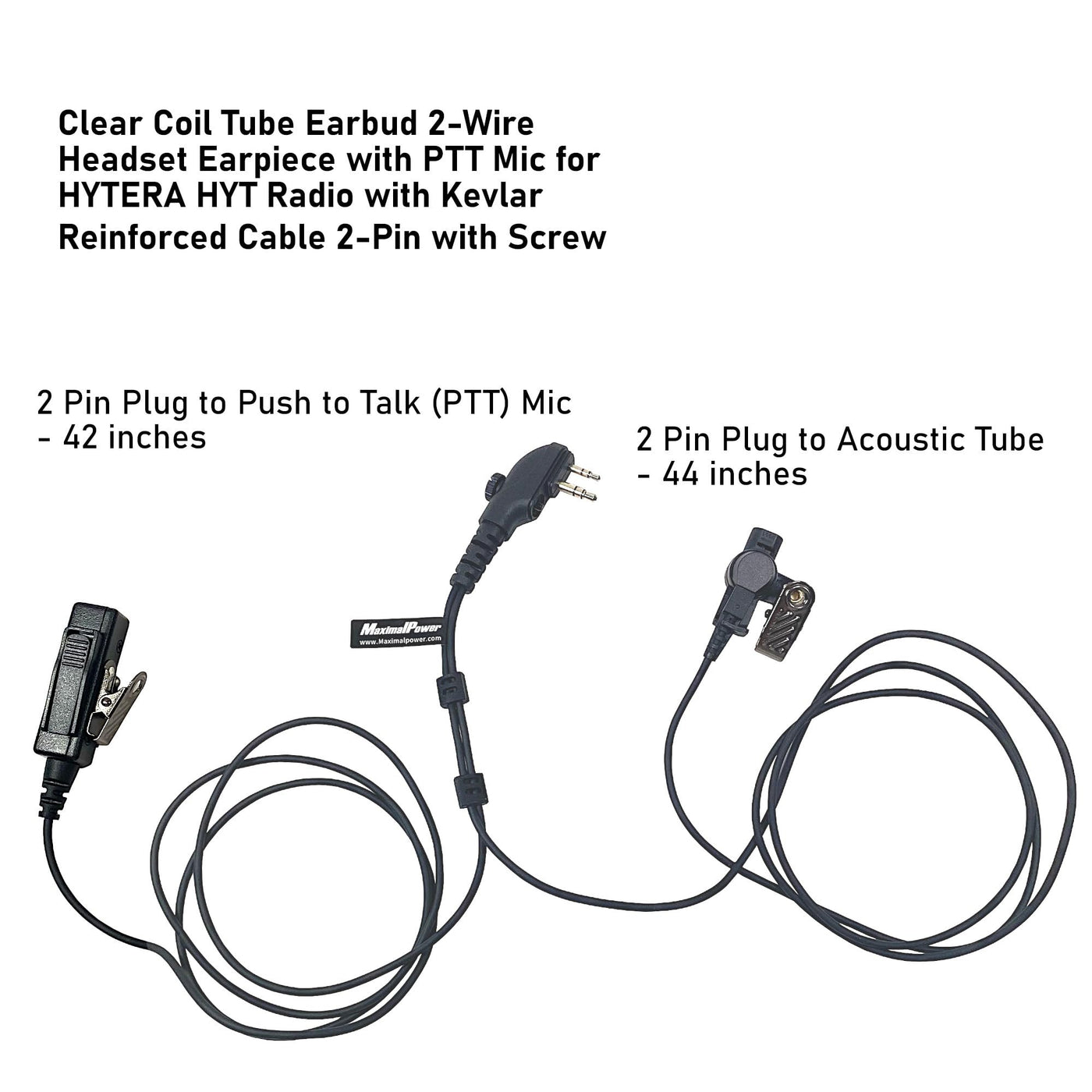 Maximalpower Clear Coil Tube Earbud Headset Ptt Mic W/Kevlar Hytera 2 Pin Plug With Screw